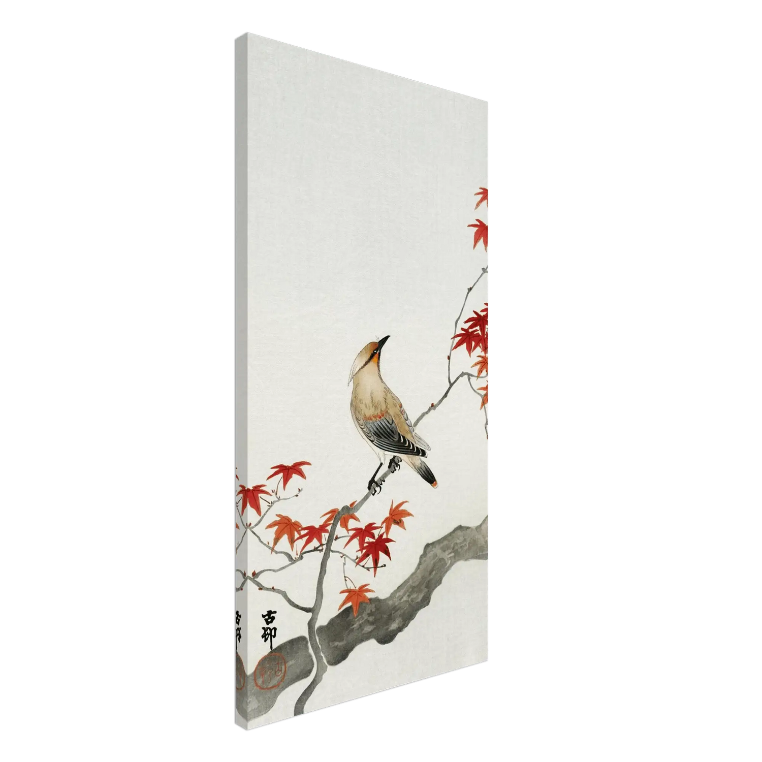 Vogel auf rotem Ahornzweig - Leinwand Edition - HINORI