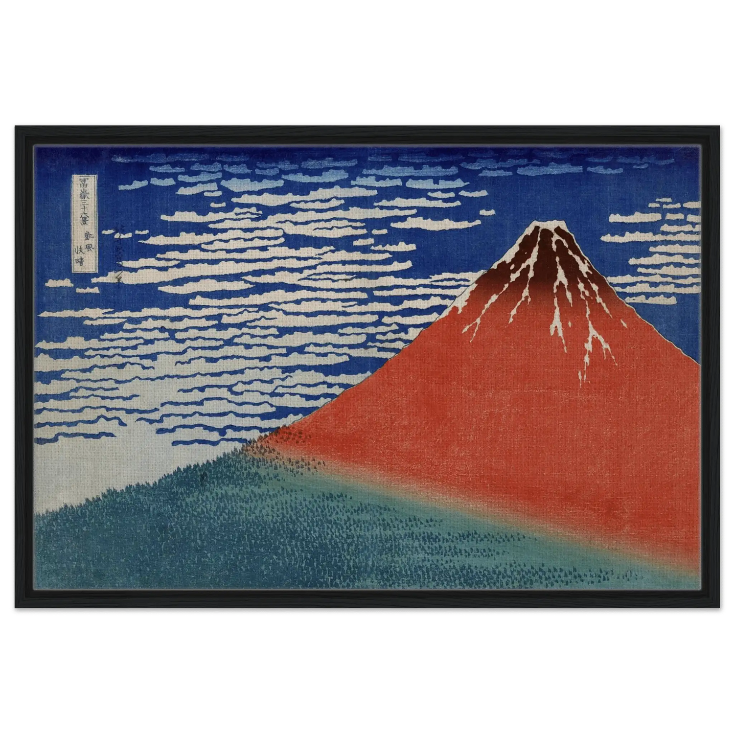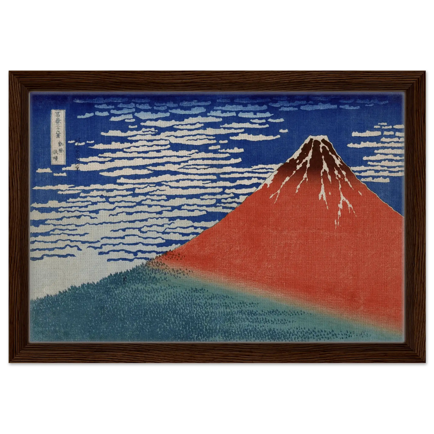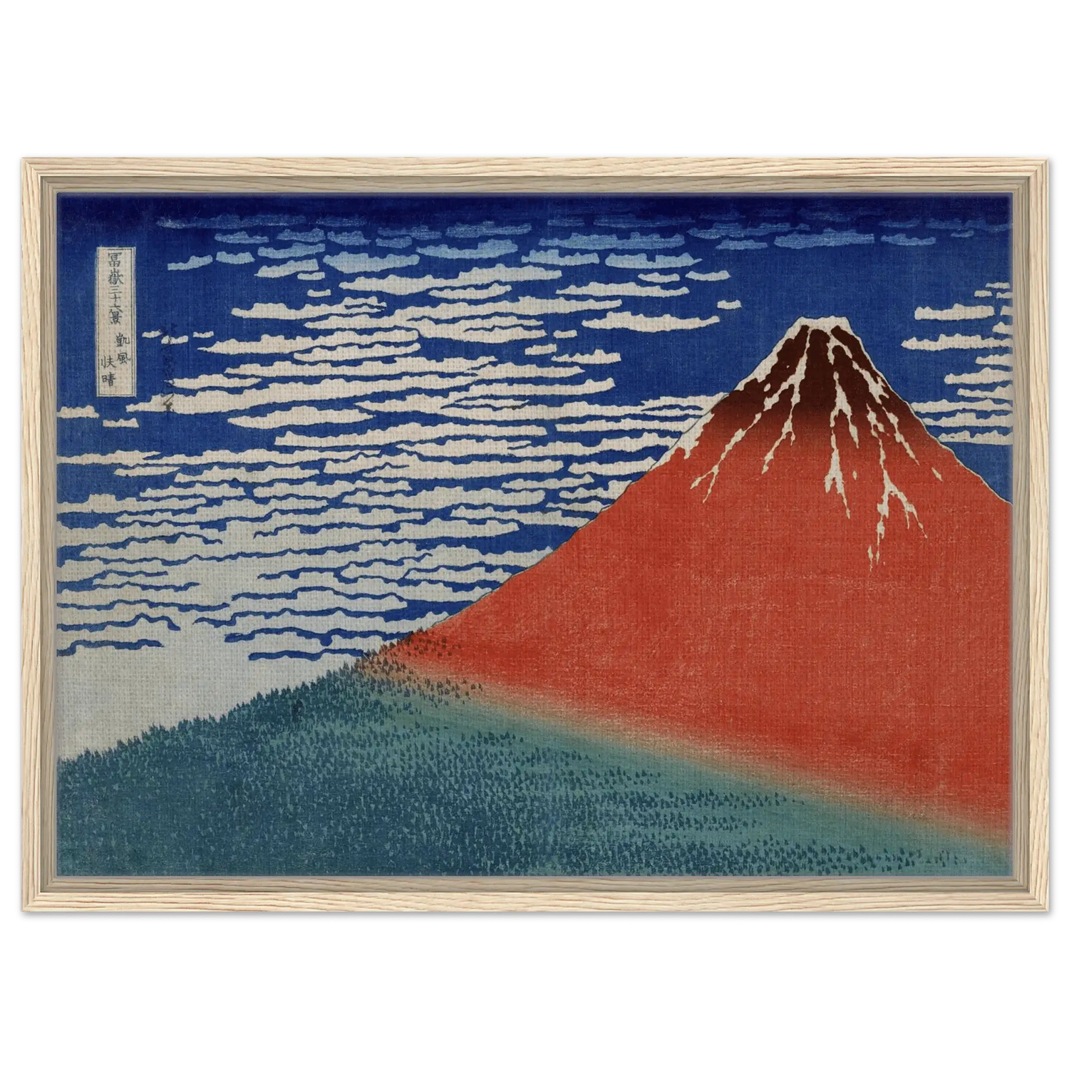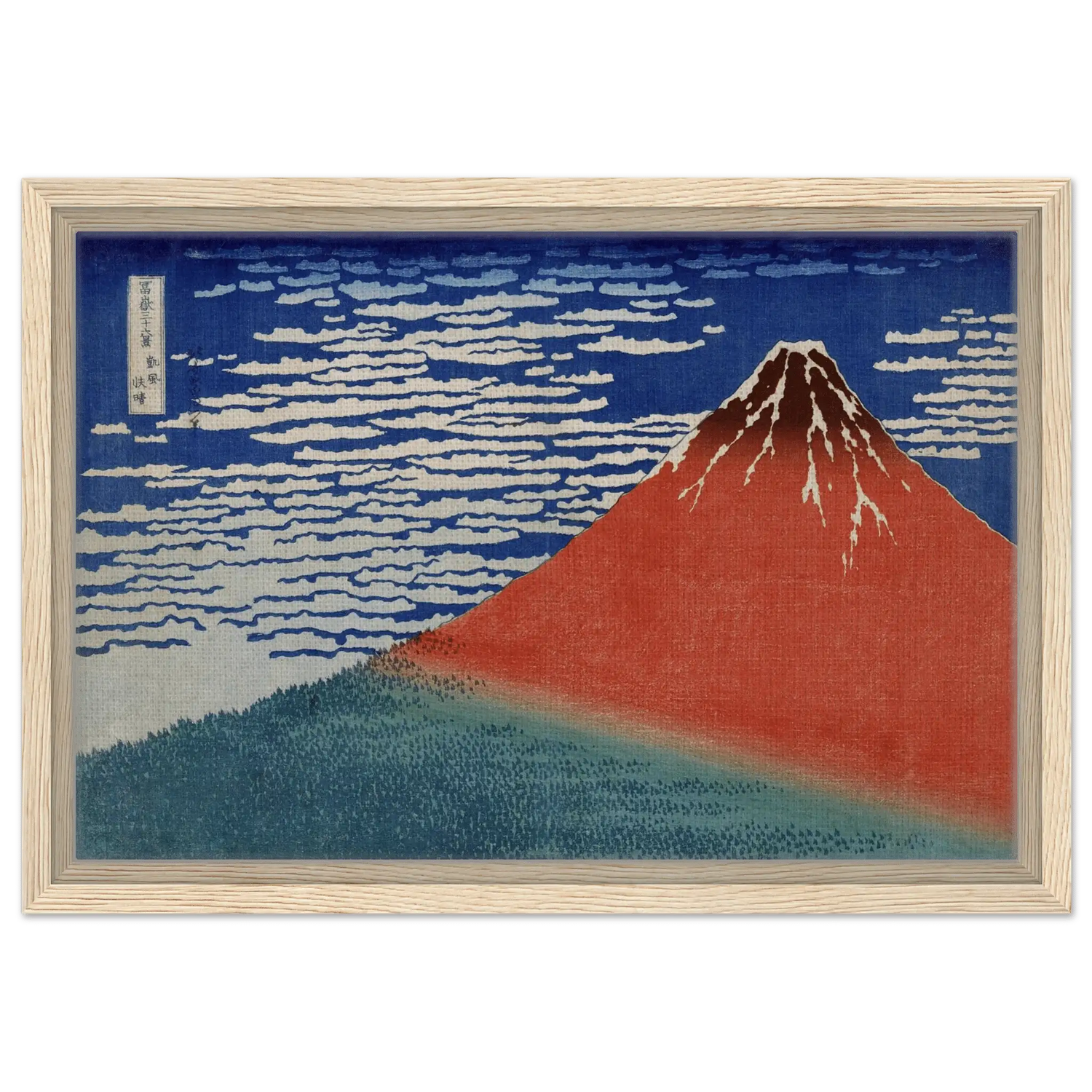 Geschaffen von Katsushika Hokusai (1760–1849), zeigt „Roter Fuji im Morgenlicht“ die majestätische Ruhe des heiligen Berges – ein Sinnbild für Beständigkeit und Reinheit. In der Kombination aus kühlem Blau und warmem Rot entsteht eine perfekte Balance zwischen Energie und Frieden.