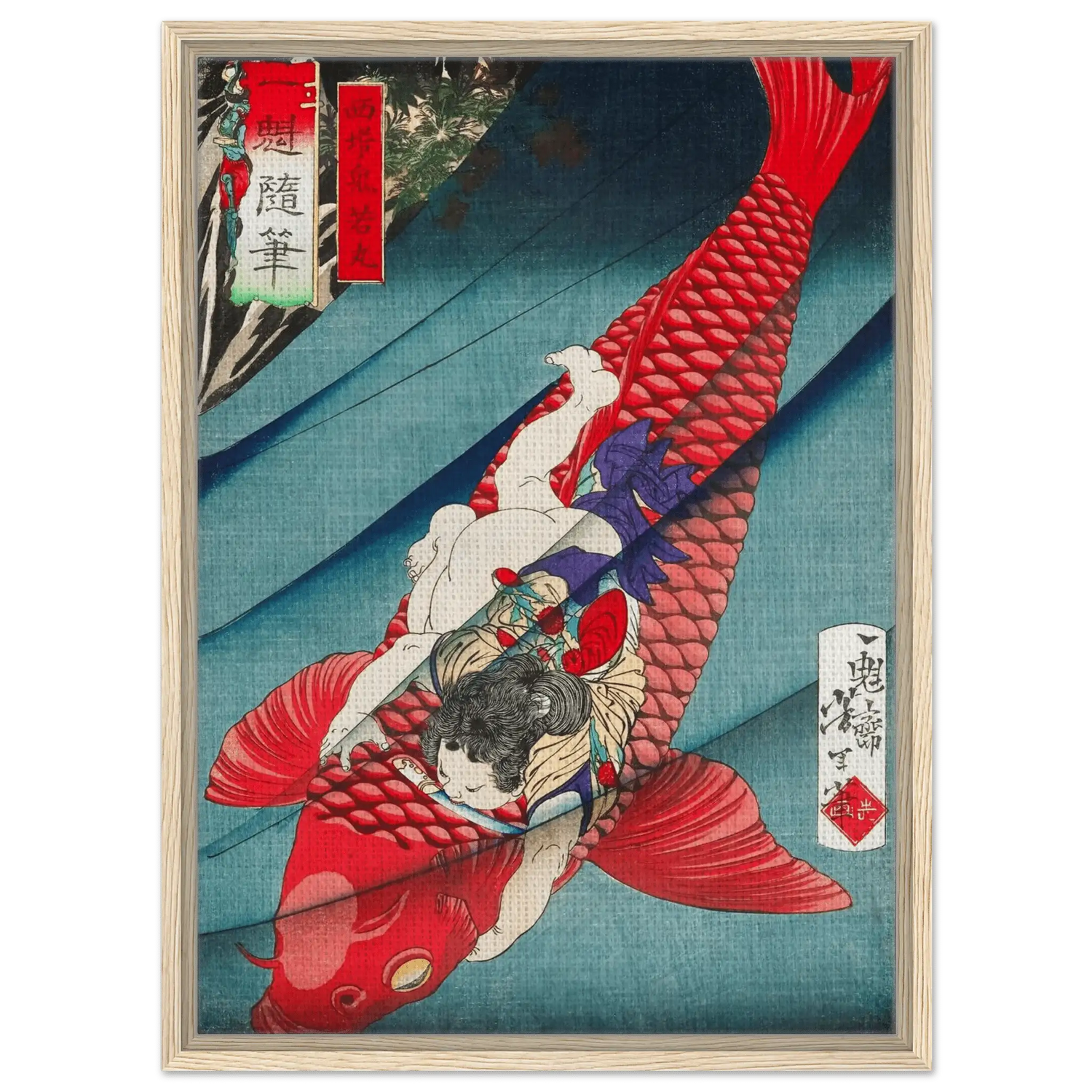 „Oniwakamaru und der Karpfen“ ist ein Ausdruck ungebändigter Kraft – ein mythischer Moment, der von innerem Feuer erzählt.