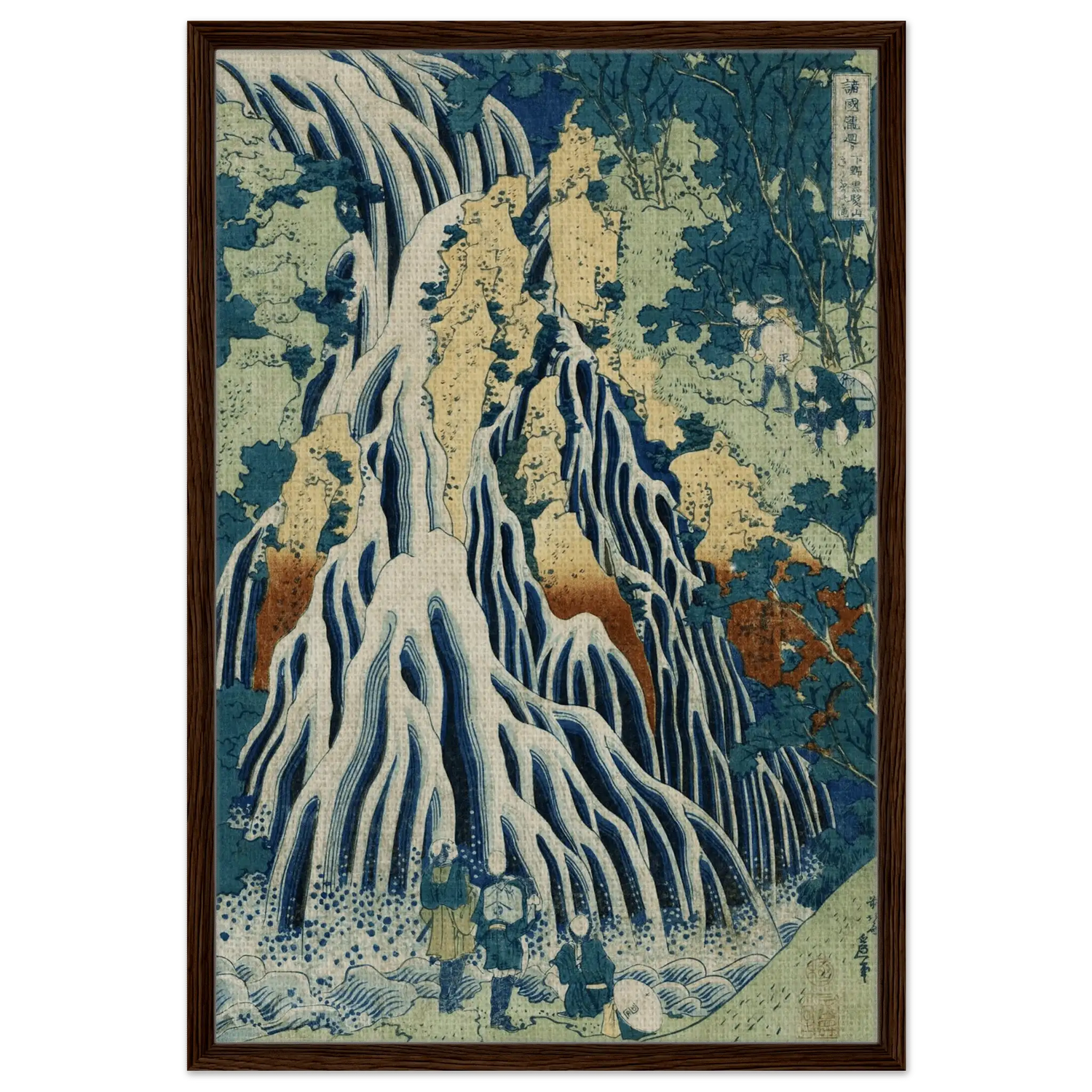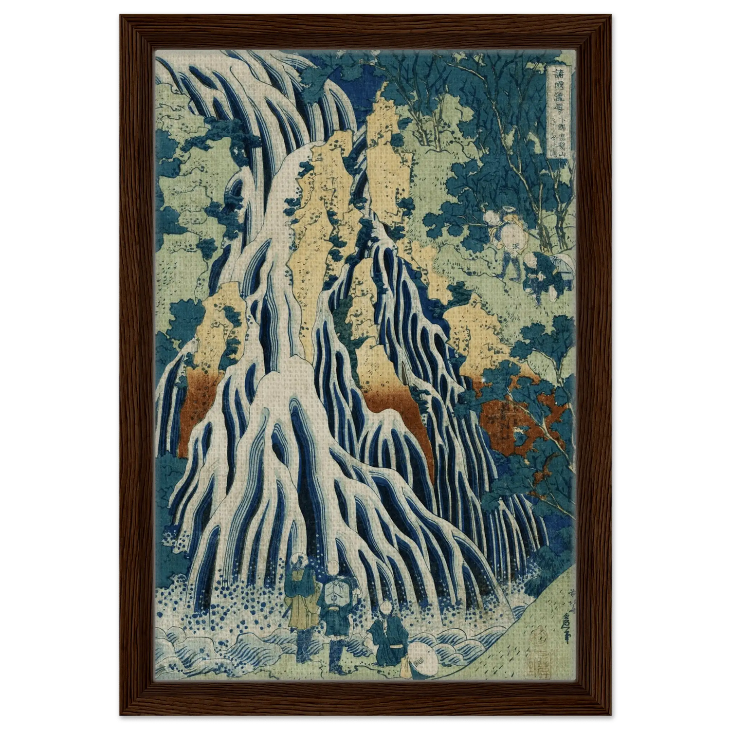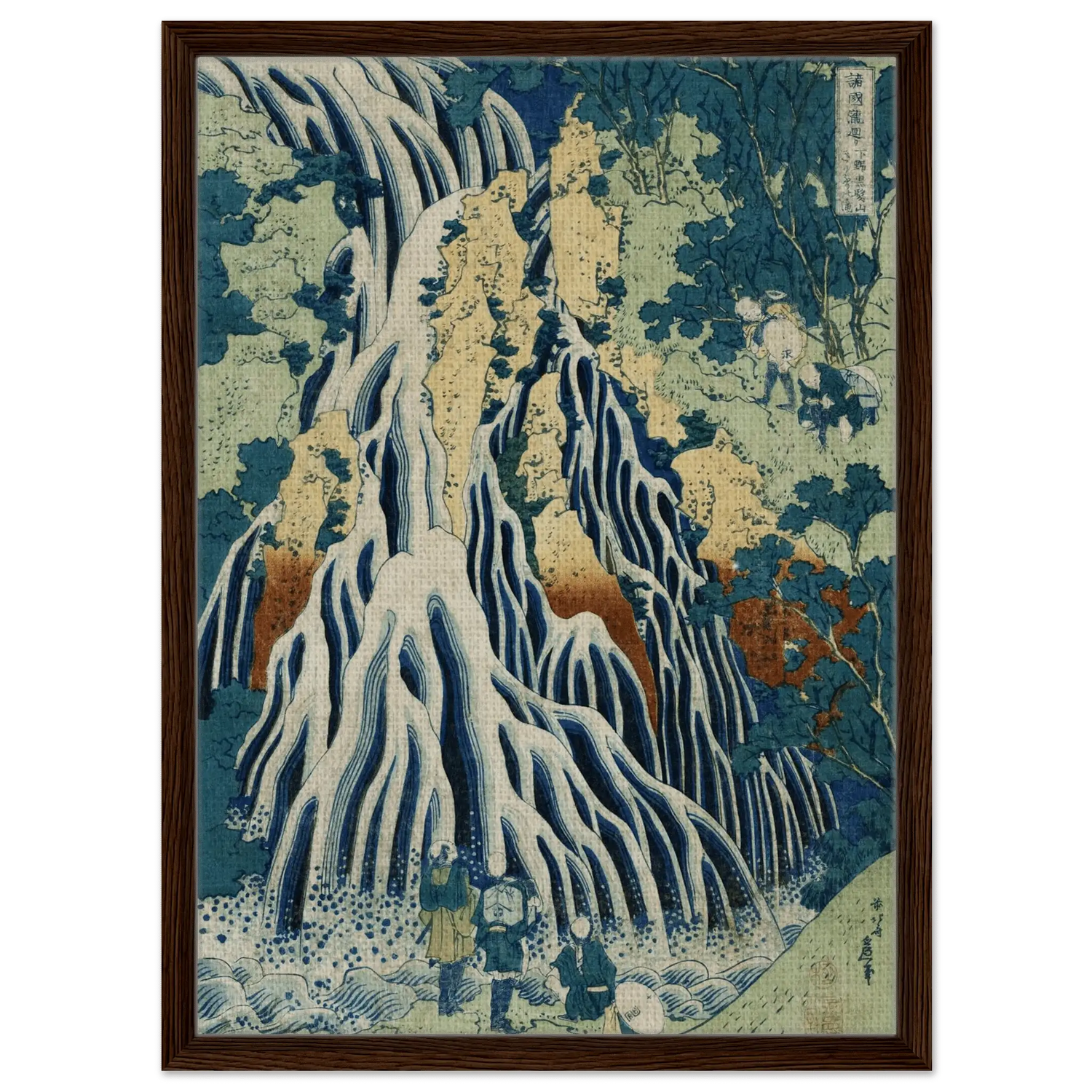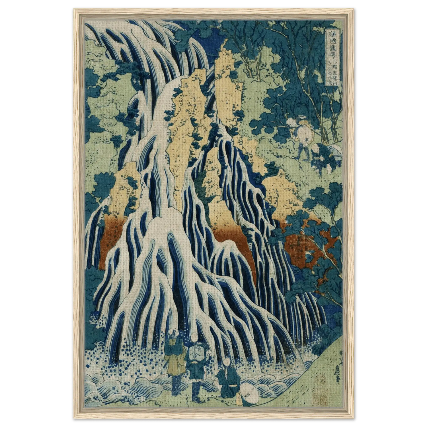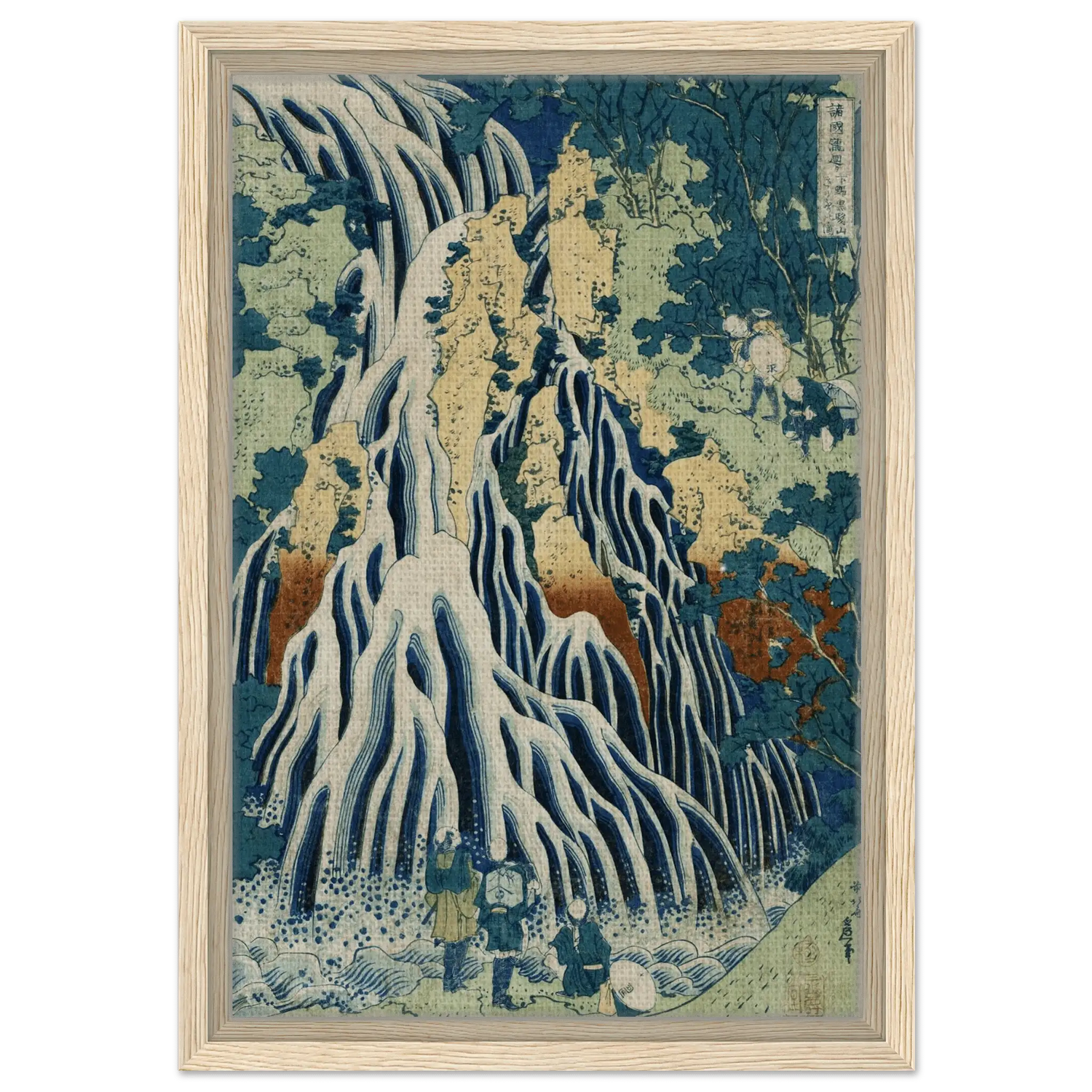 In „Am Kirifuri-Wasserfall“ zeigt Hokusai seine einzigartige Fähigkeit, Bewegung in Linien zu verwandeln – das Wasser scheint zu tanzen, die Bäume scheinen zu atmen. Die klaren Blautöne und sanften Verläufe des Himmels machen das Bild zu einer meditativen Komposition zwischen Energie und Ruhe.