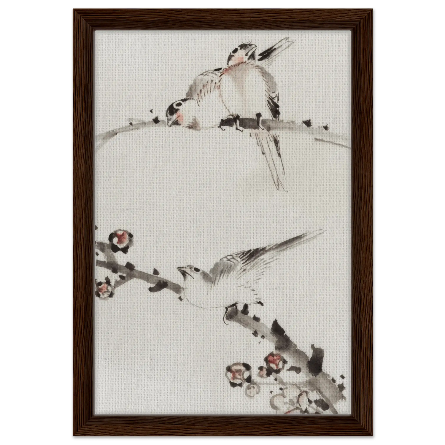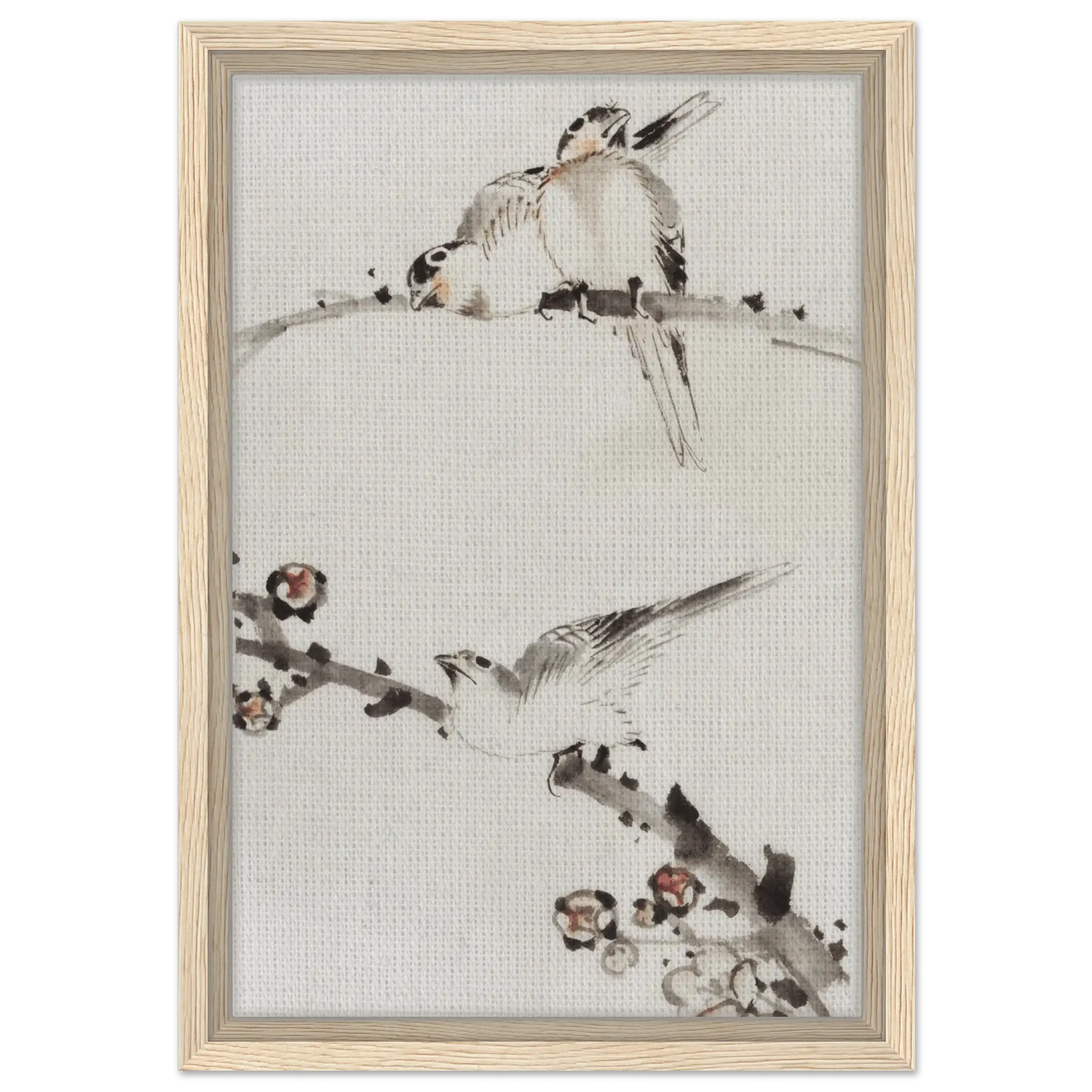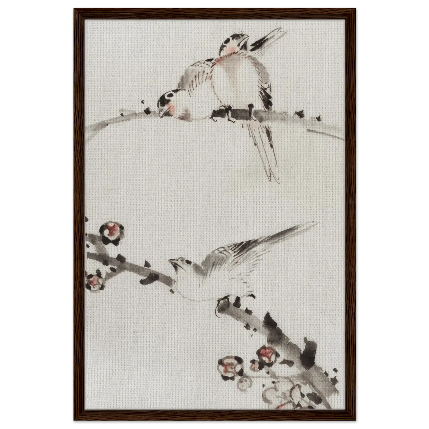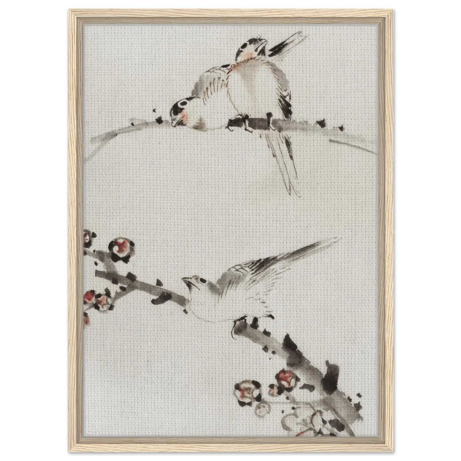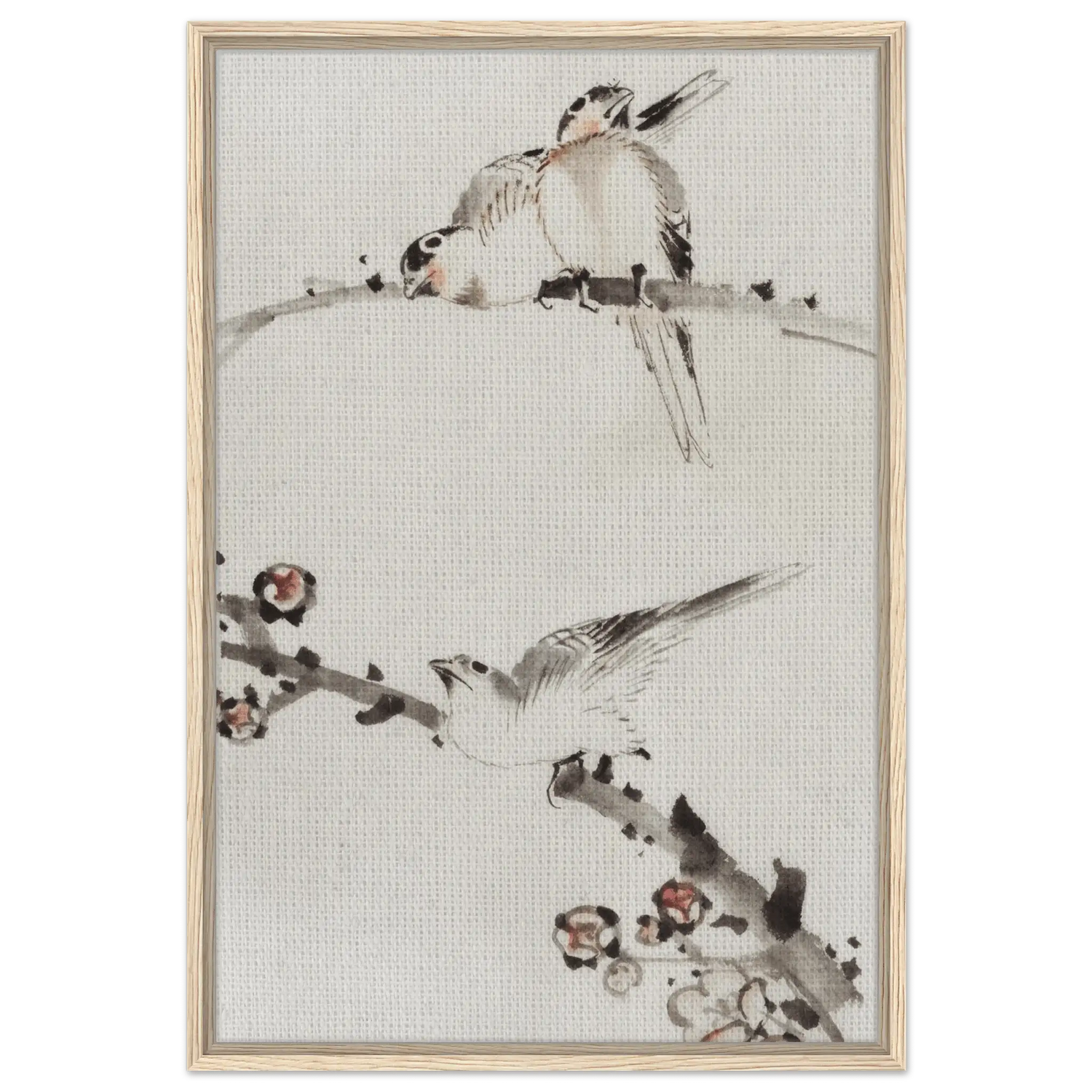 Originaltitel: Three Birds Perched on Branches, One with Blossoms