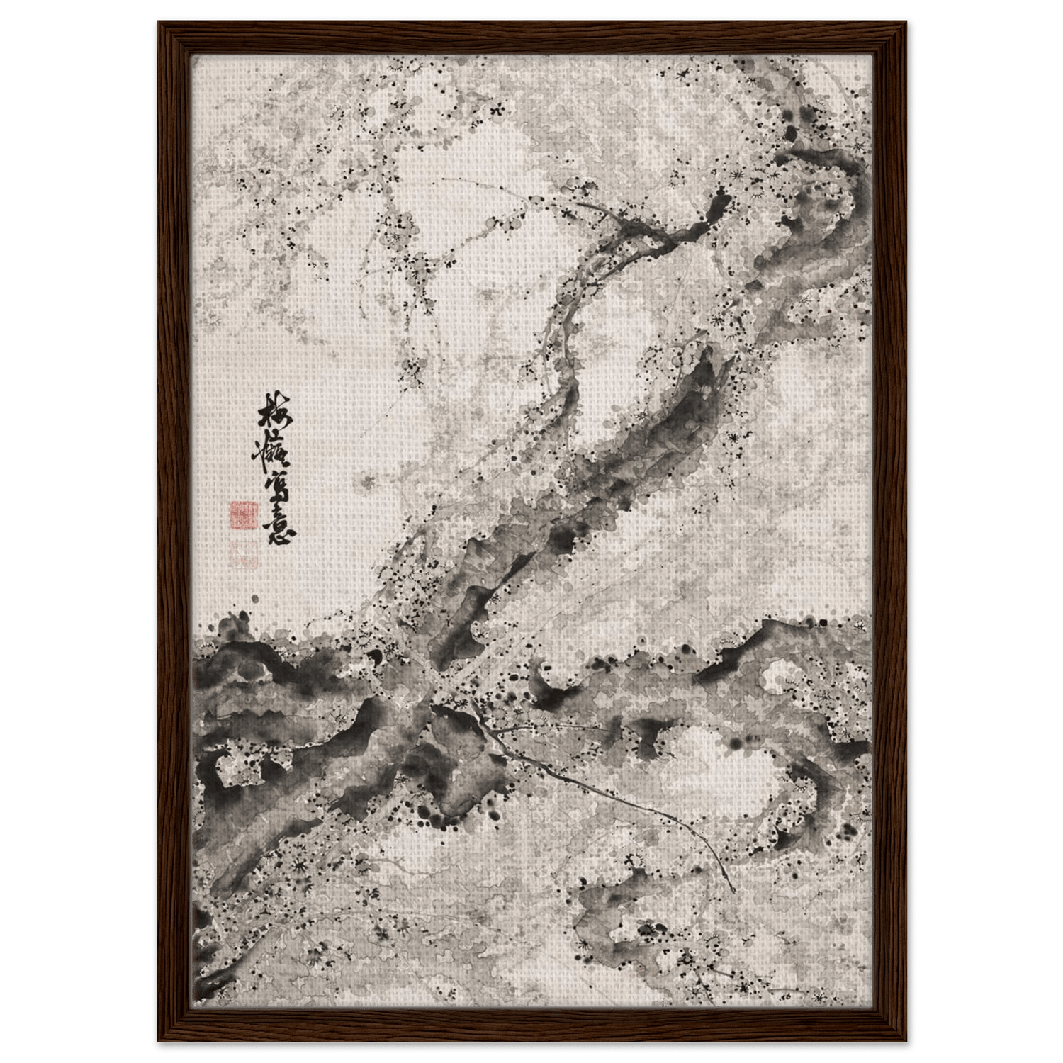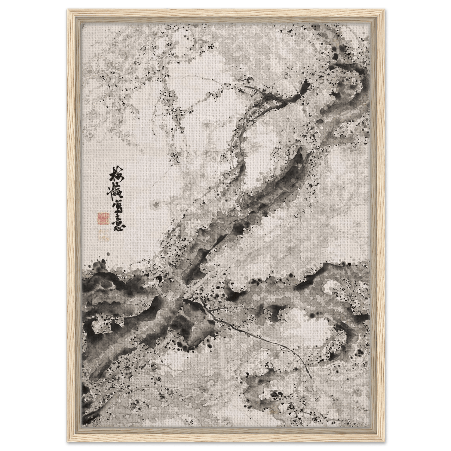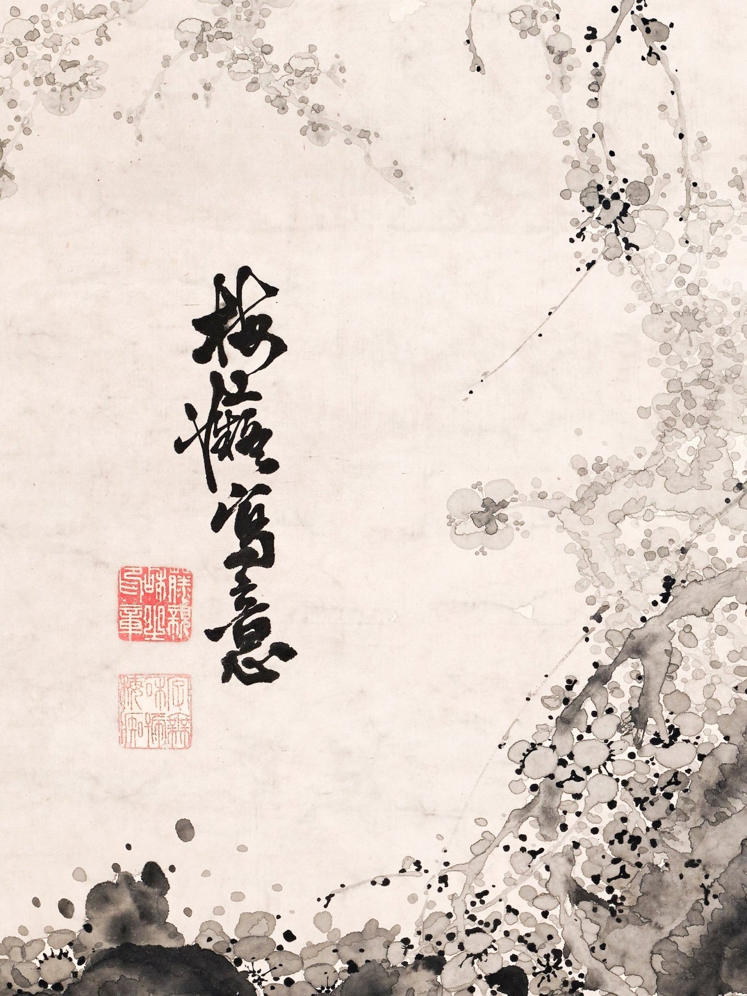 Feine Tusche verläuft über das Papier wie ein Atemzug der Natur. Die Zweige des Pflaumenbaums winden sich in lebendigem Schwung, ihre Blüten öffnen sich in zarten, fast flüchtigen Formen. Baichi Dōjin schafft mit sparsamen Mitteln ein Werk von tiefer Ruhe und Poesie – ein Sinnbild der Vergänglichkeit und der Schönheit des Erwachens.