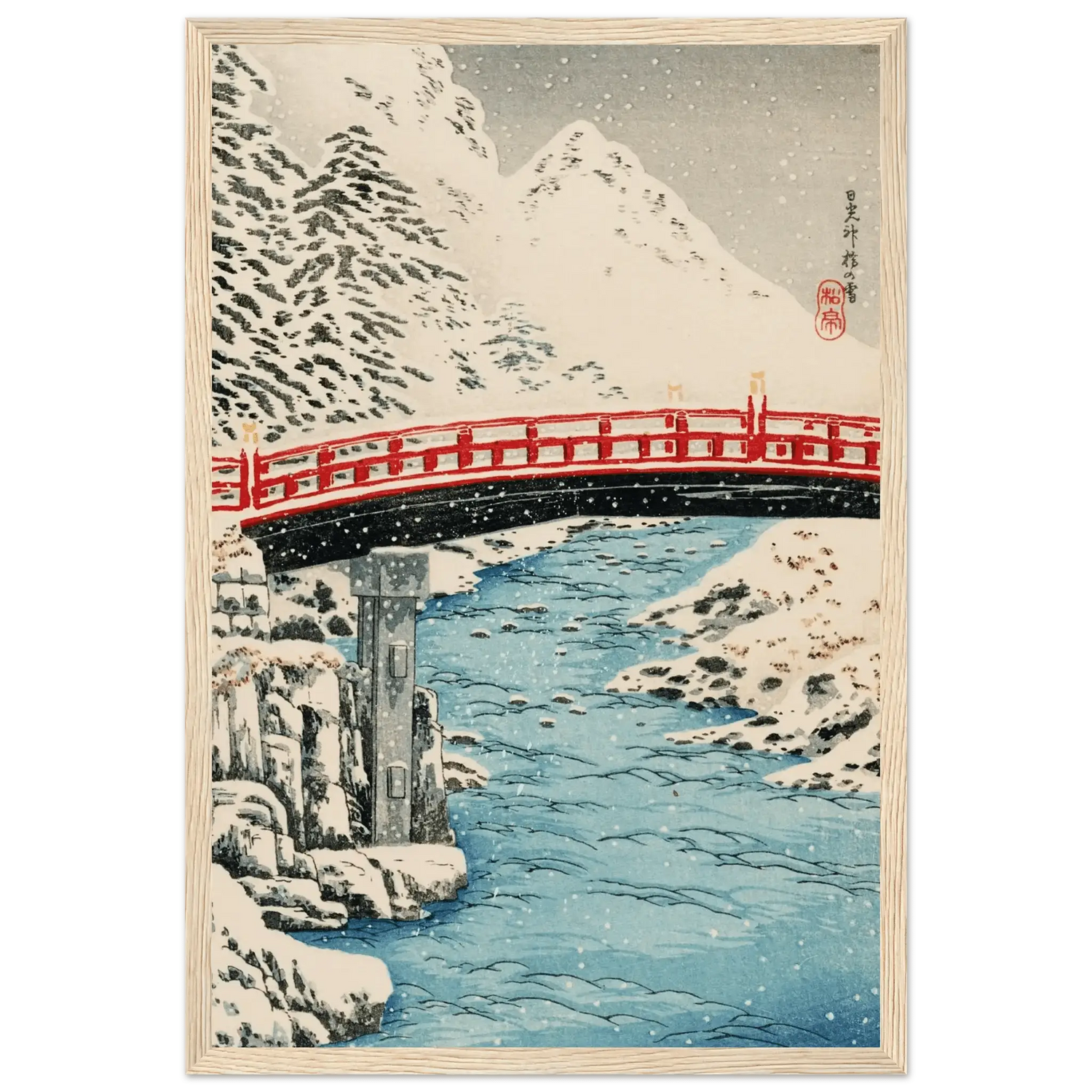 Heilige Brücke im Schneefall - Gerahmte Eleganz - HINORI