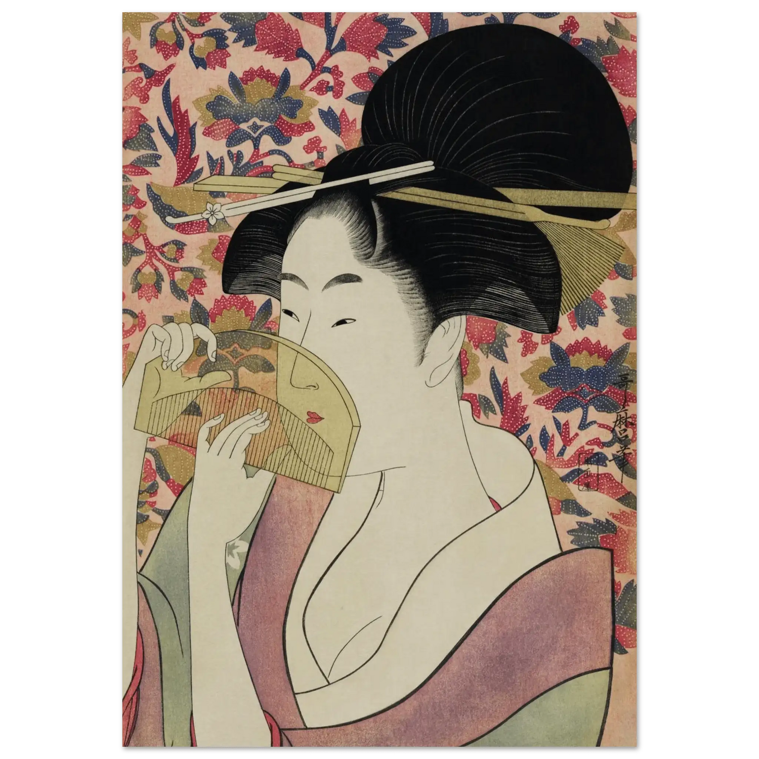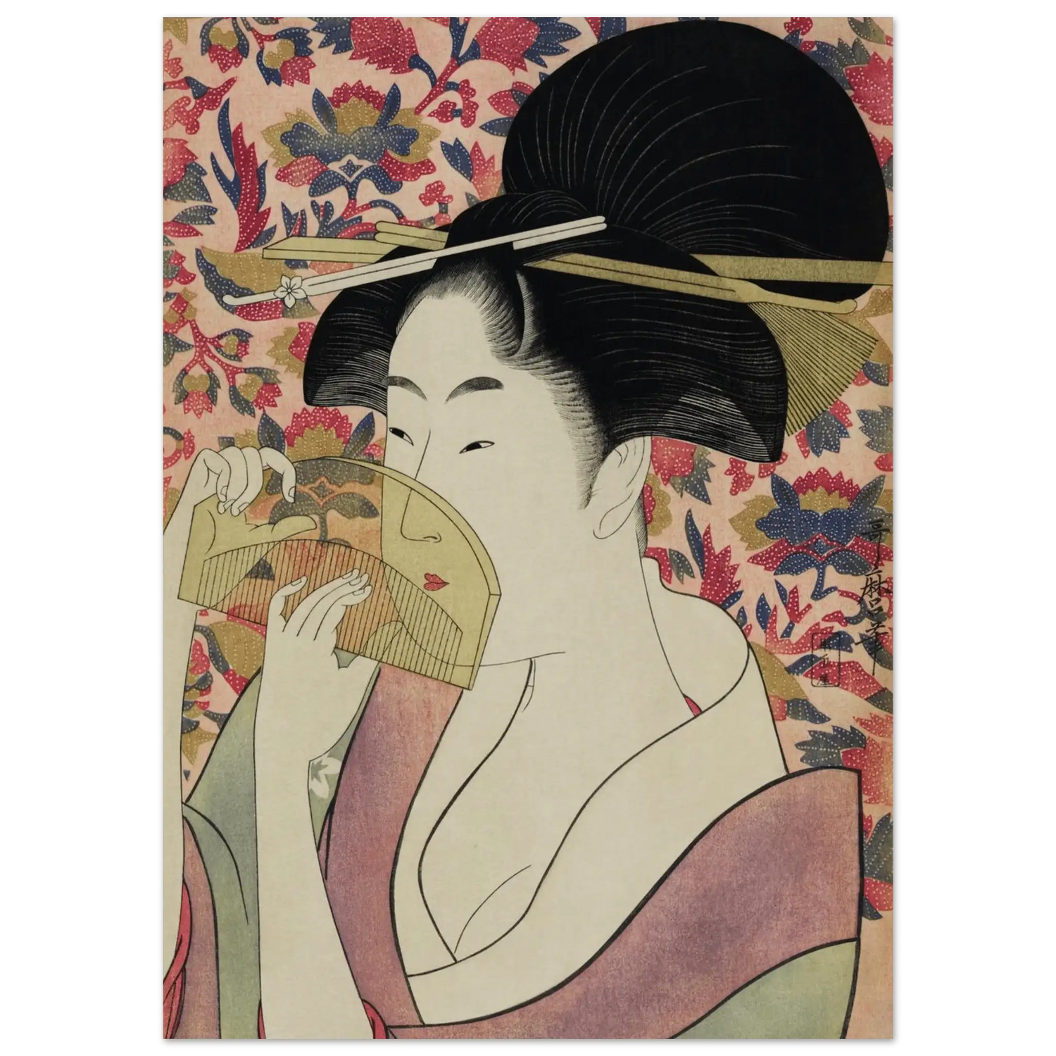Mit außergewöhnlicher Feinheit in Linien und Farbe schuf Utamaro ein zeitloses Porträt der weiblichen Anmut. Jede Bewegung, jeder Schatten wirkt bewusst gesetzt und verleiht der Szene ein Gefühl leiser Intimität.