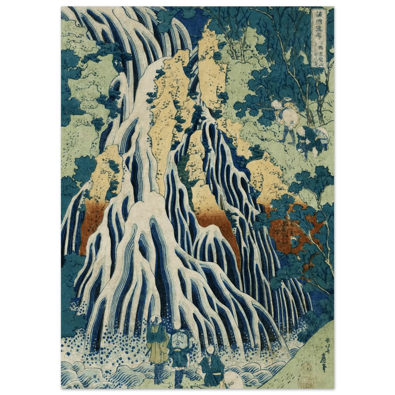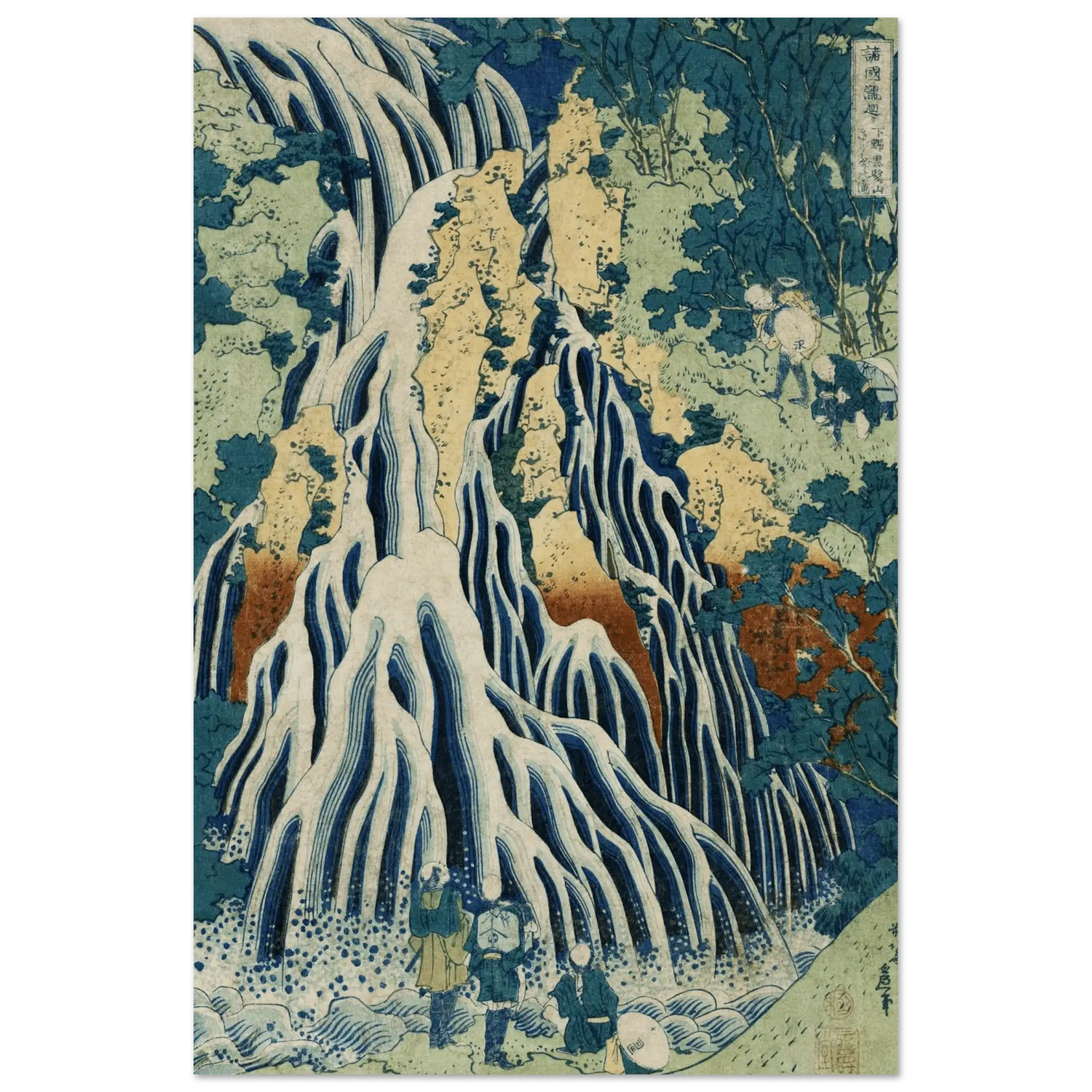 In „Am Kirifuri-Wasserfall“ zeigt Hokusai seine einzigartige Fähigkeit, Bewegung in Linien zu verwandeln – das Wasser scheint zu tanzen, die Bäume scheinen zu atmen. Die klaren Blautöne und sanften Verläufe des Himmels machen das Bild zu einer meditativen Komposition zwischen Energie und Ruhe.