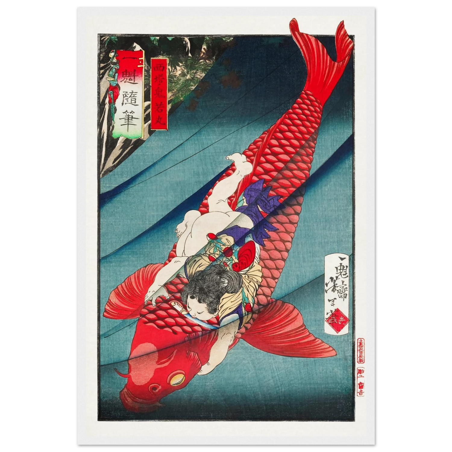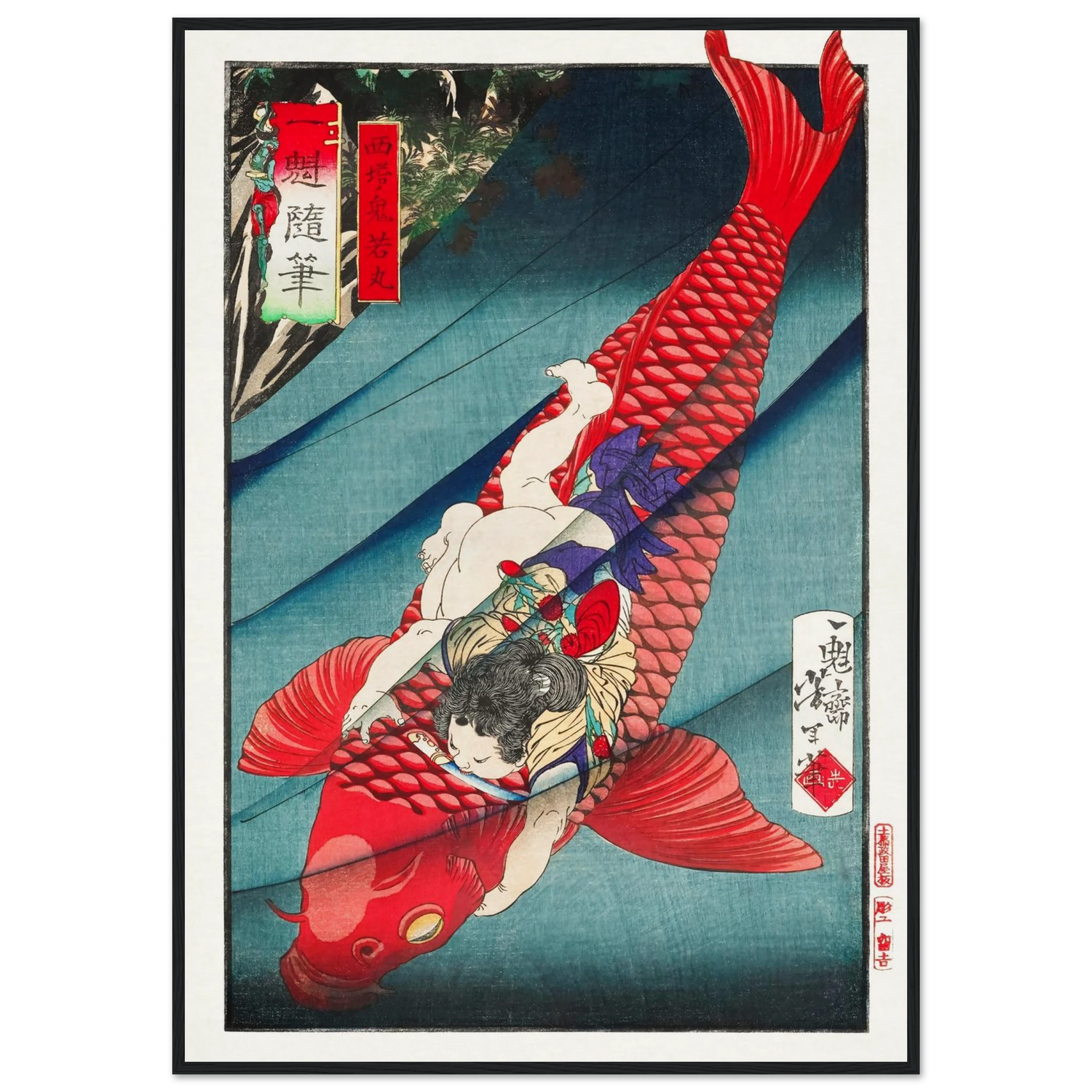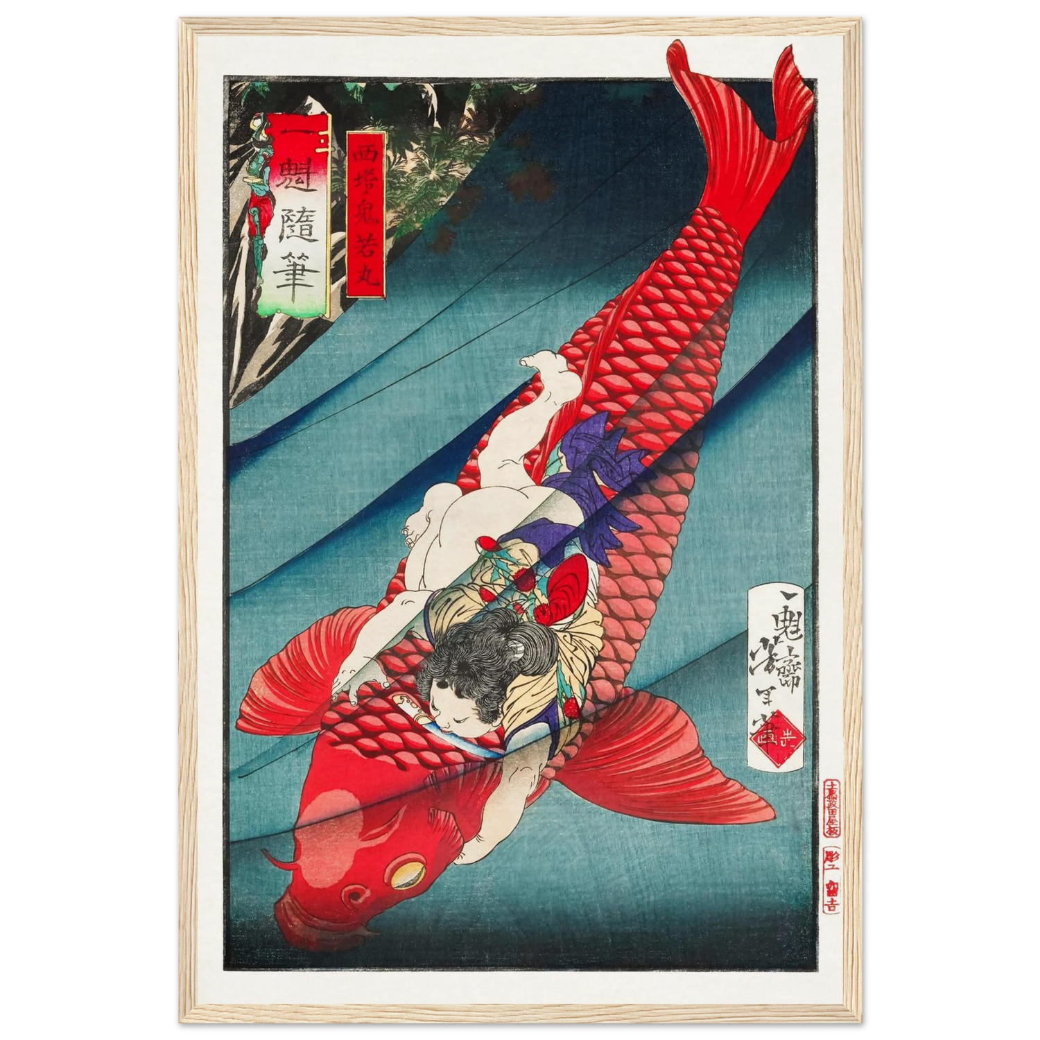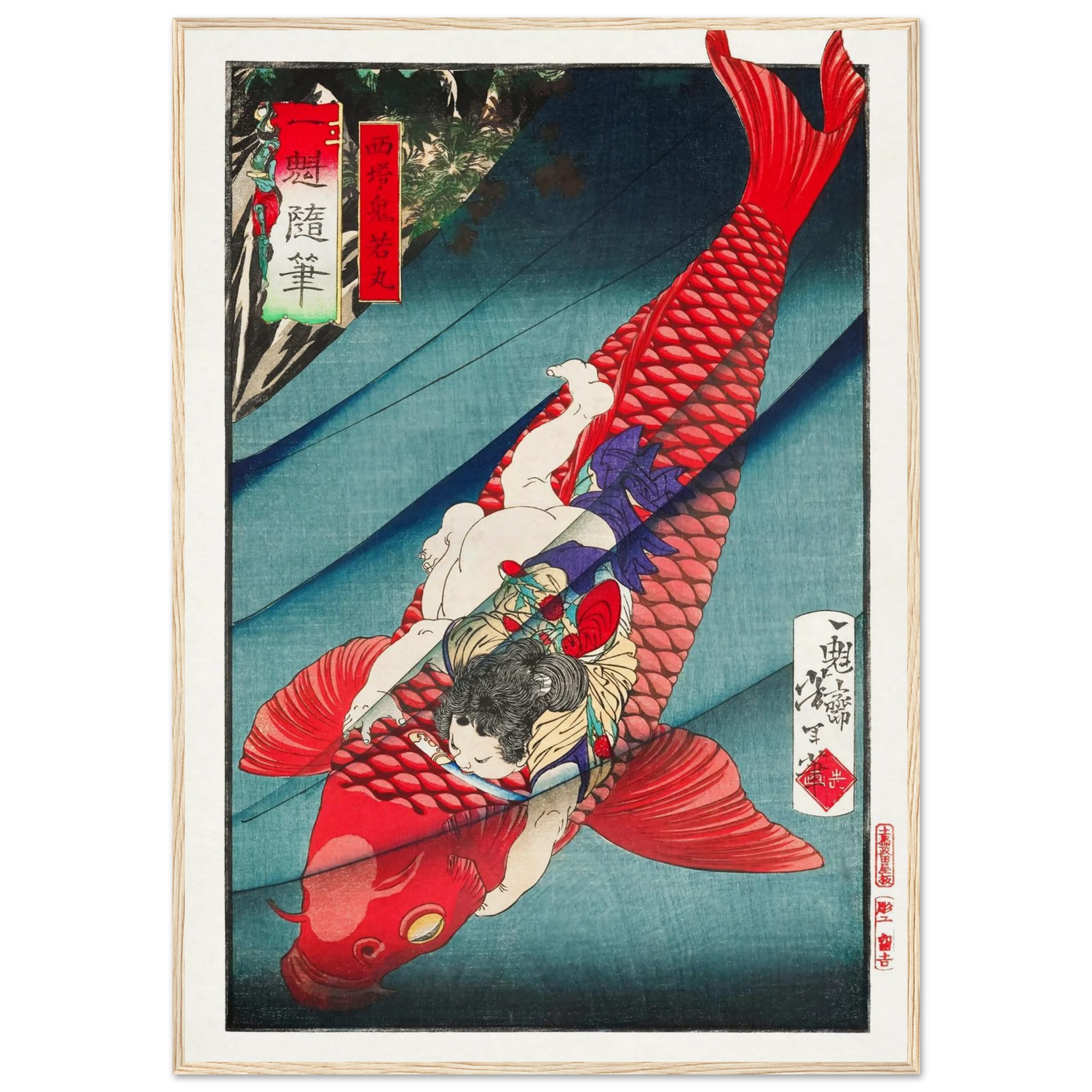 „Oniwakamaru und der Karpfen“ ist ein Ausdruck ungebändigter Kraft – ein mythischer Moment, der von innerem Feuer erzählt.