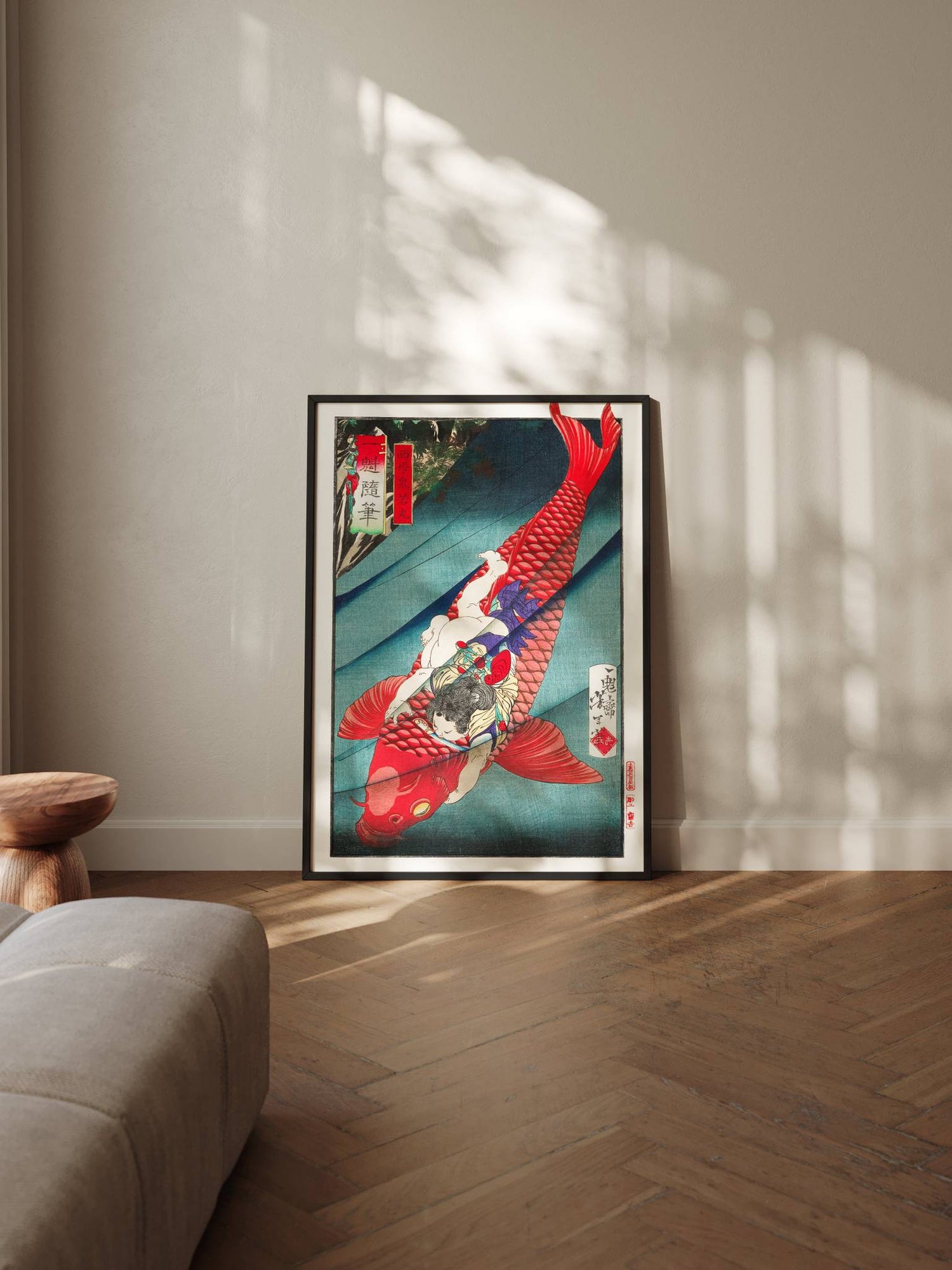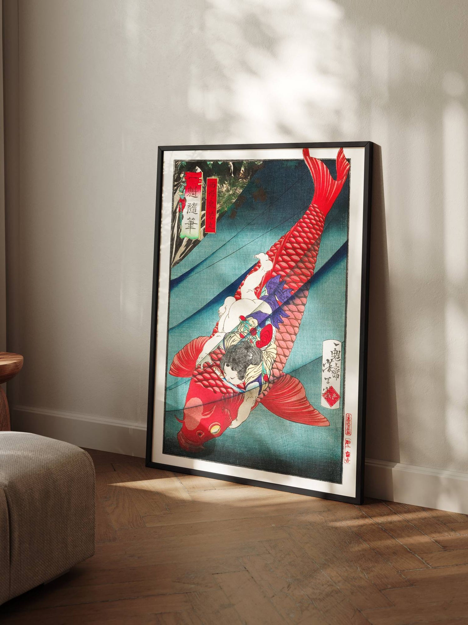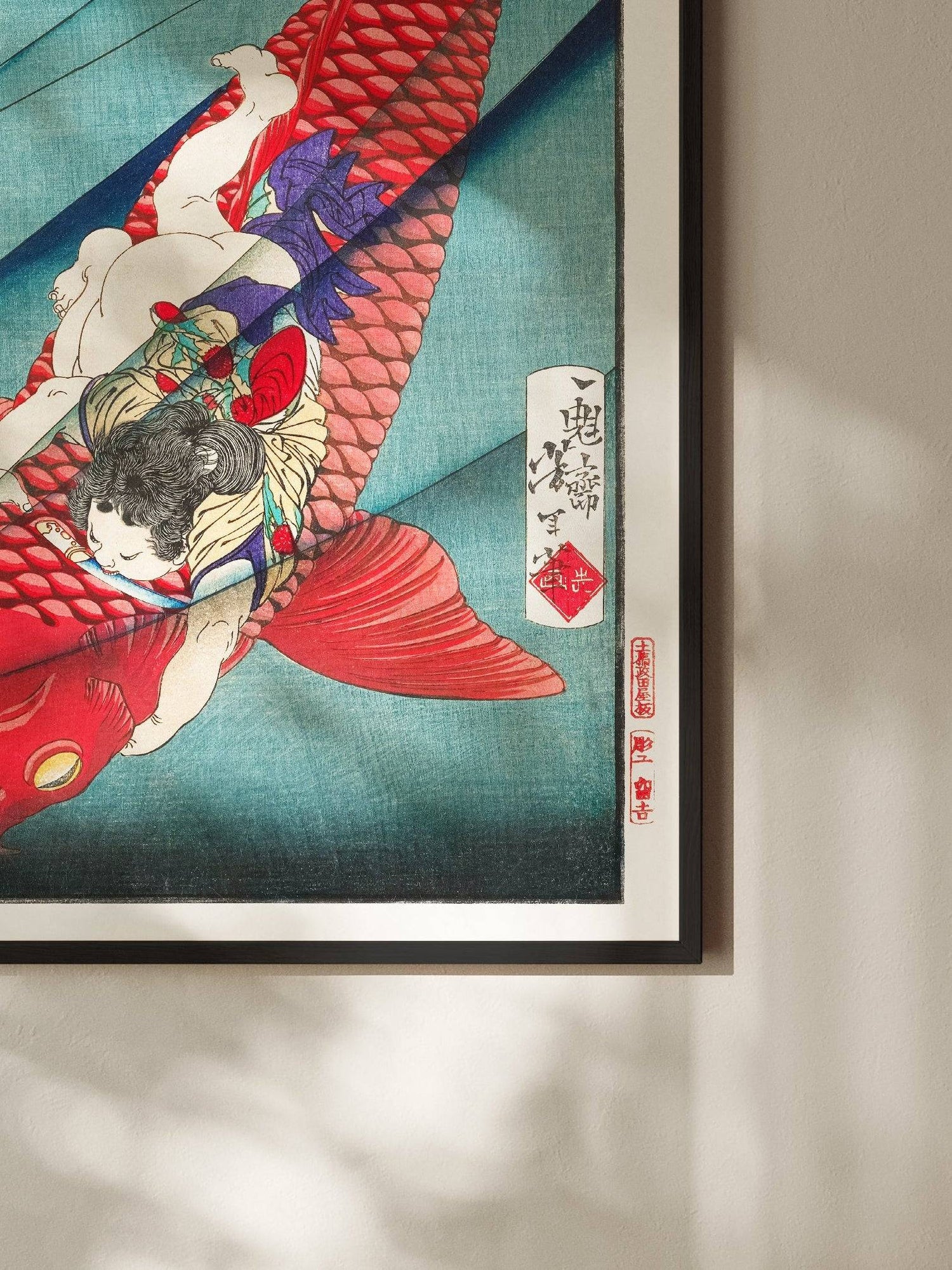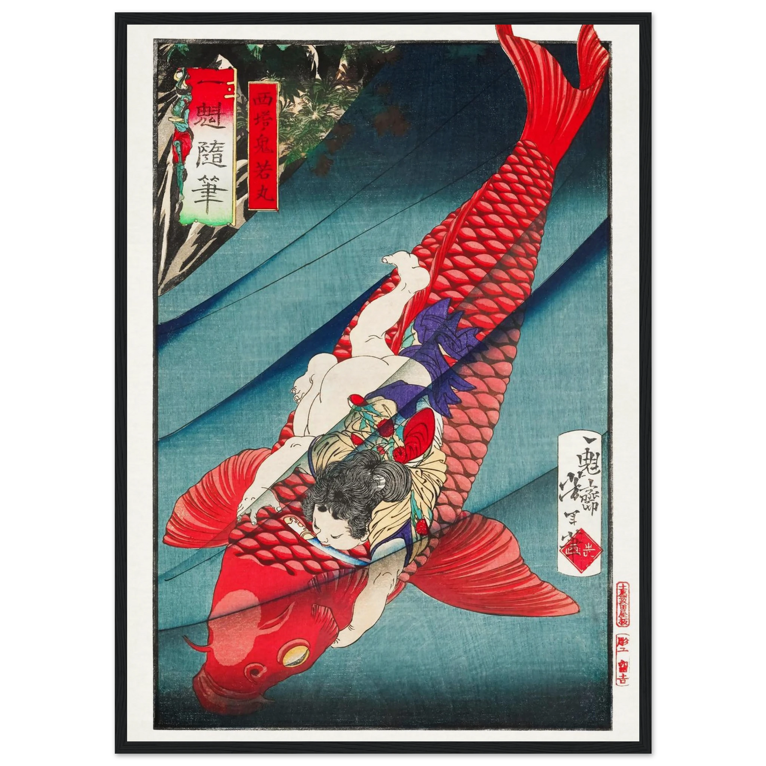 „Oniwakamaru und der Karpfen“ ist ein Ausdruck ungebändigter Kraft – ein mythischer Moment, der von innerem Feuer erzählt.