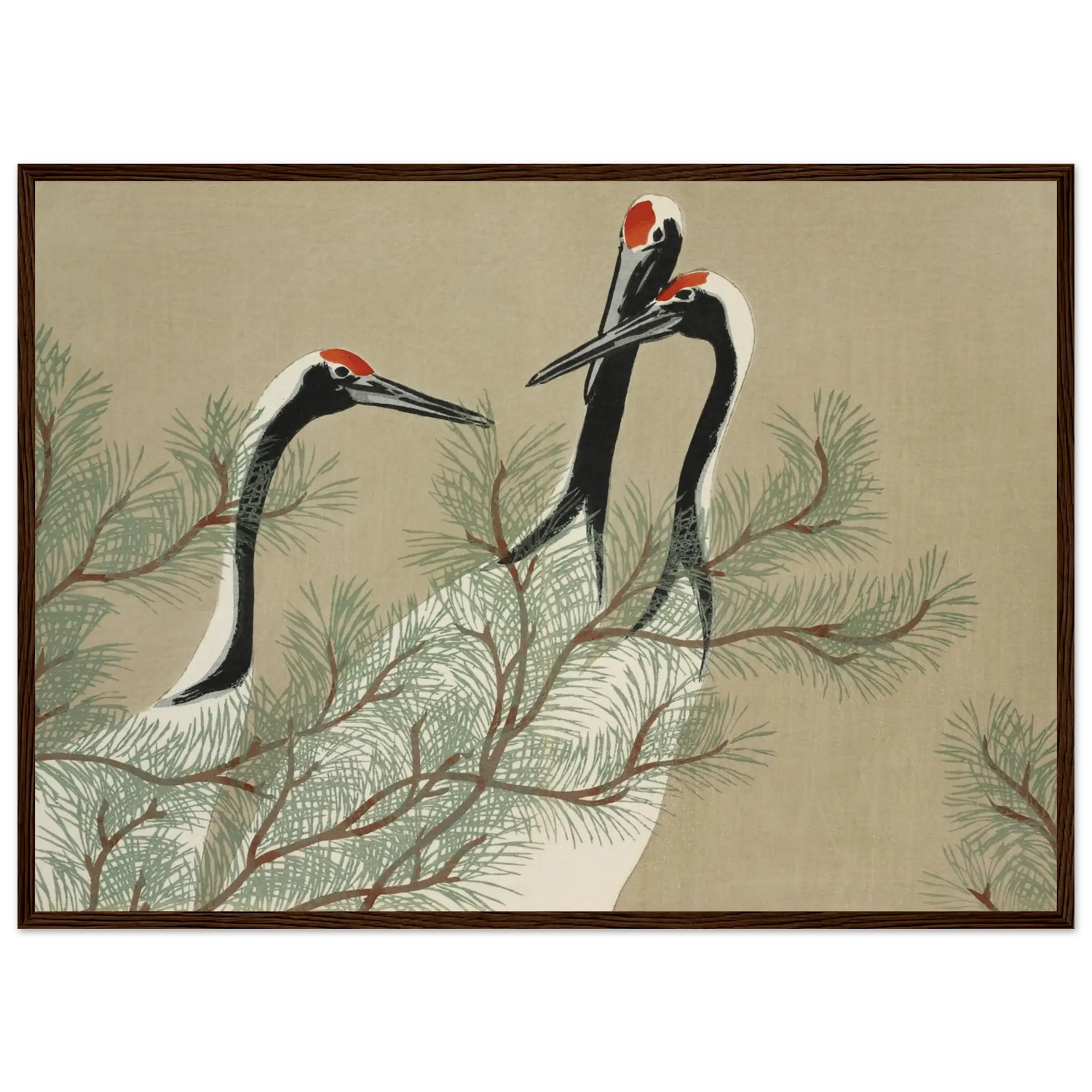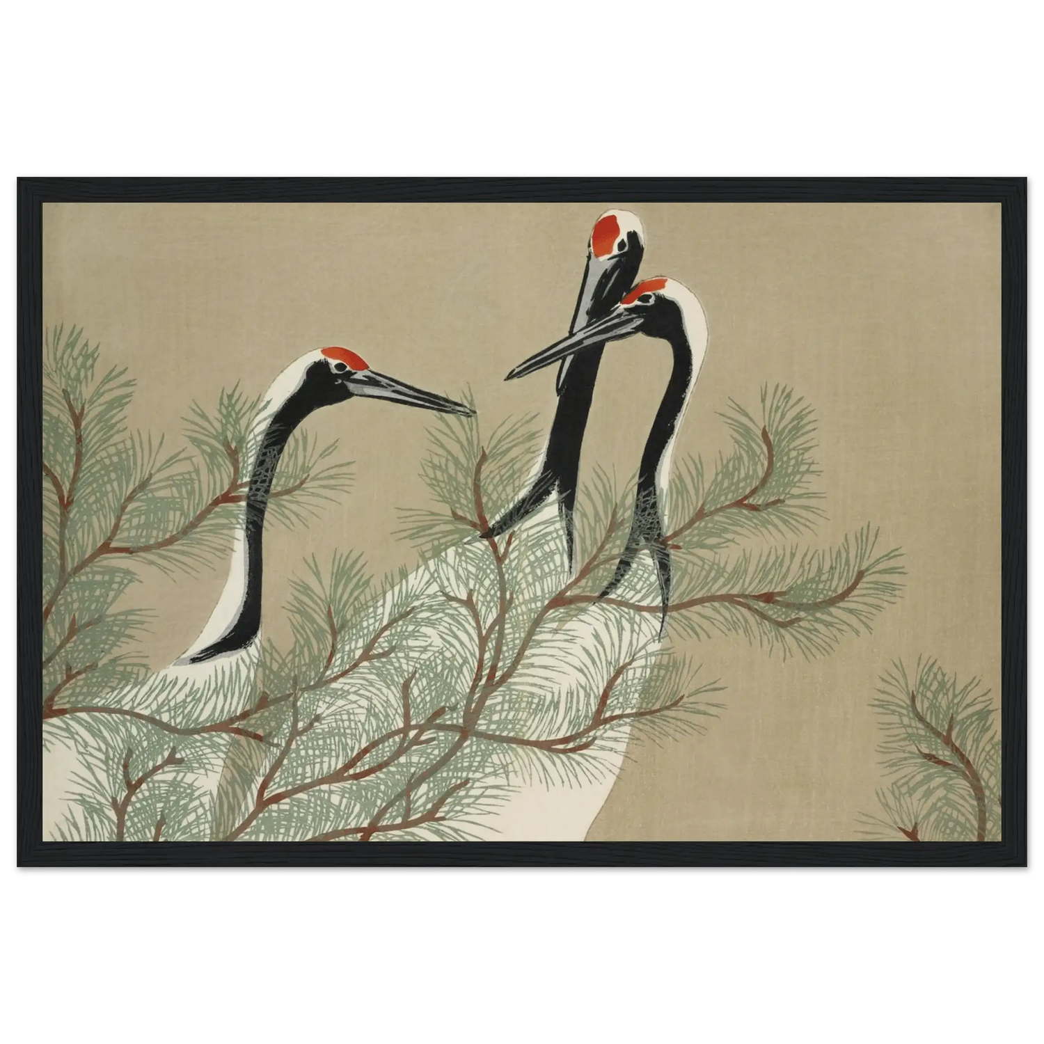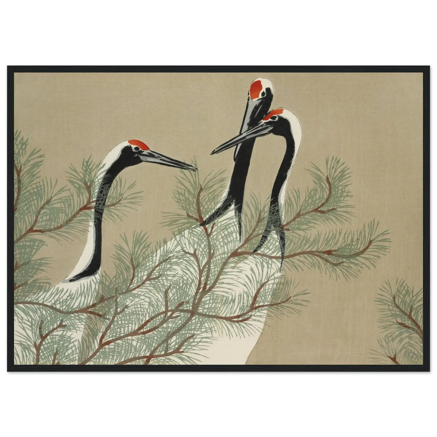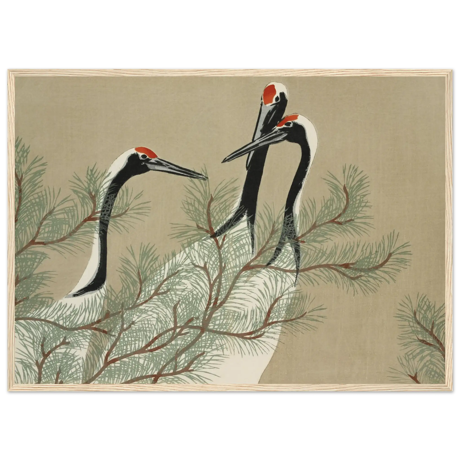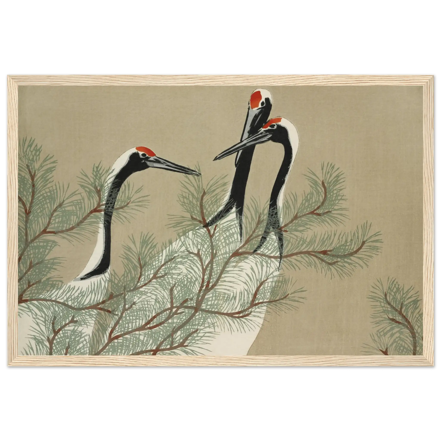 Kraniche im Kiefernwald - Gerahmte Eleganz - HINORI