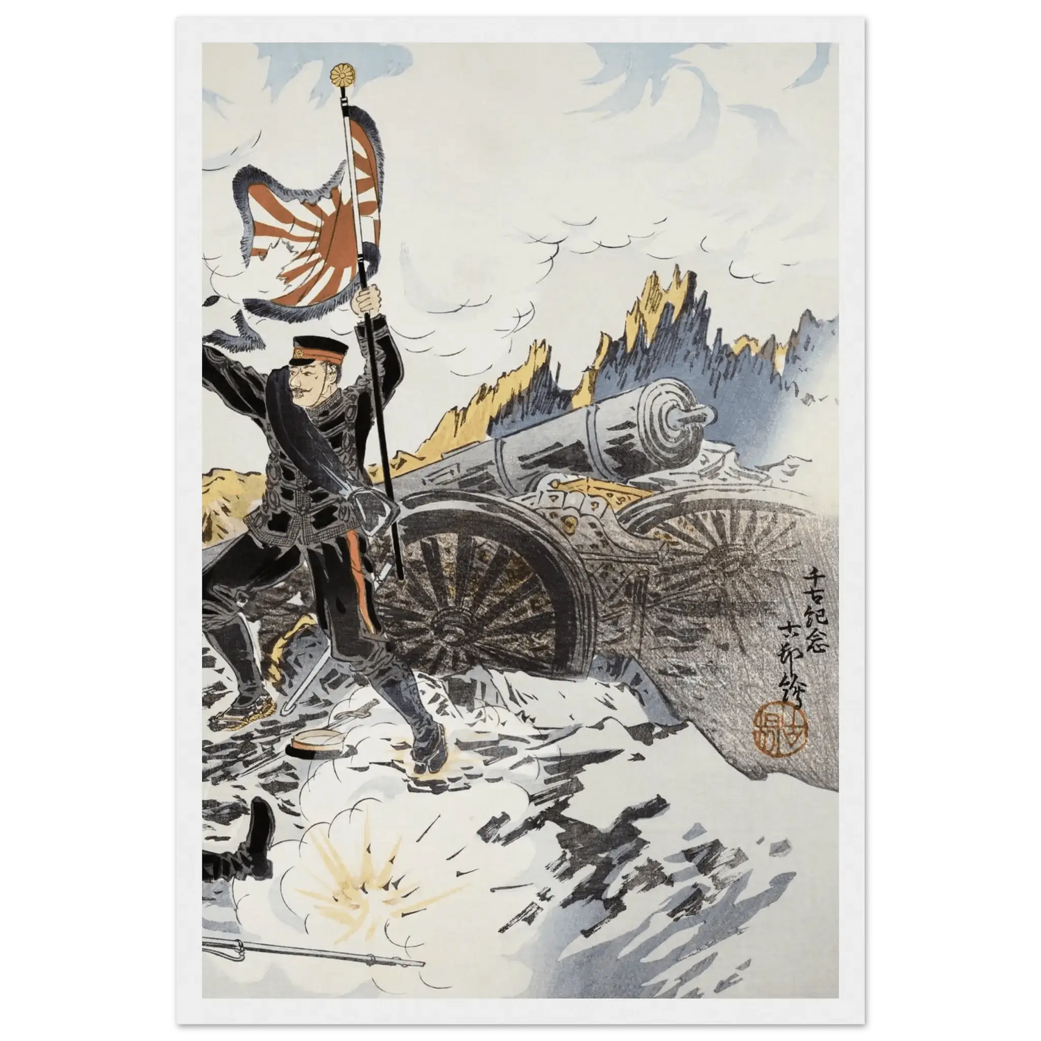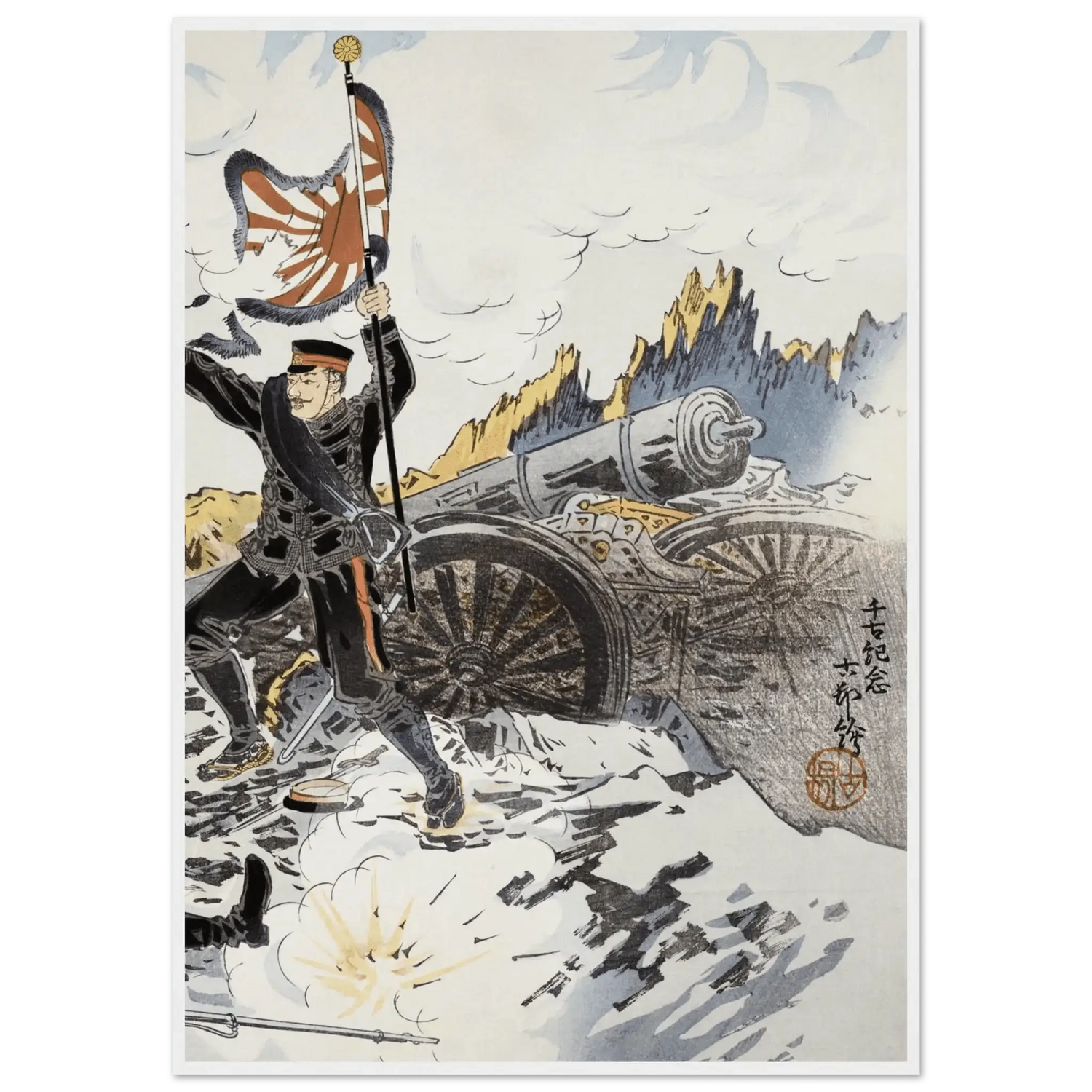 Motiv: Japanischer Offizier mit Flagge bei Port Arthur