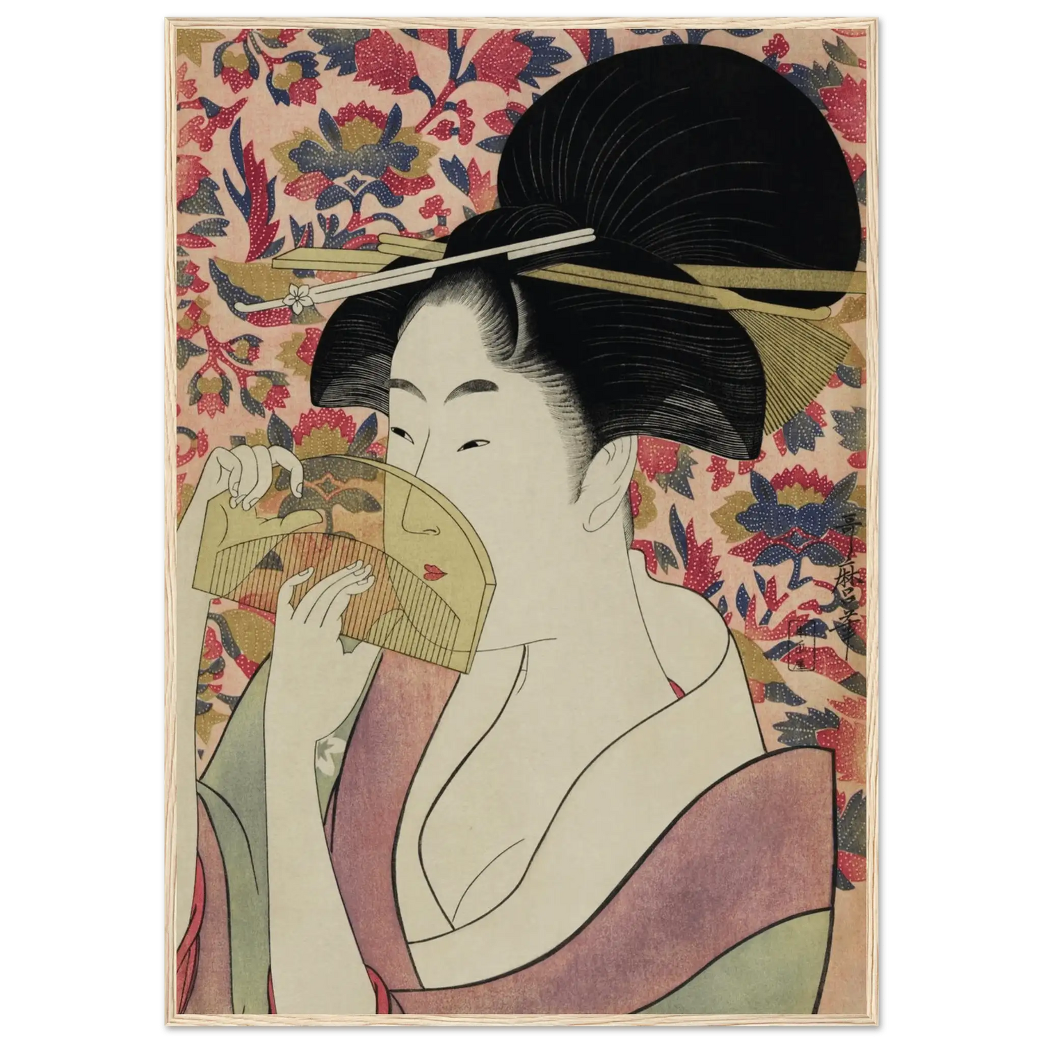 Mit außergewöhnlicher Feinheit in Linien und Farbe schuf Utamaro ein zeitloses Porträt der weiblichen Anmut. Jede Bewegung, jeder Schatten wirkt bewusst gesetzt und verleiht der Szene ein Gefühl leiser Intimität.
