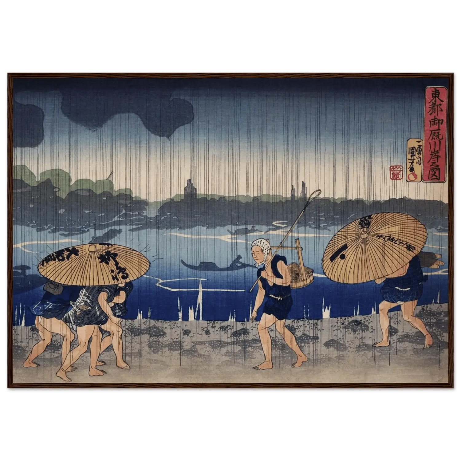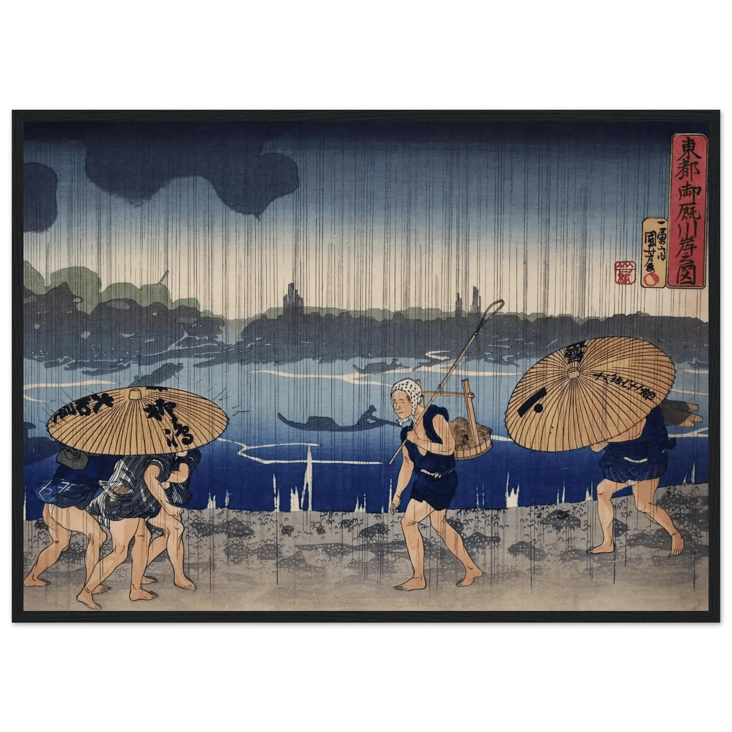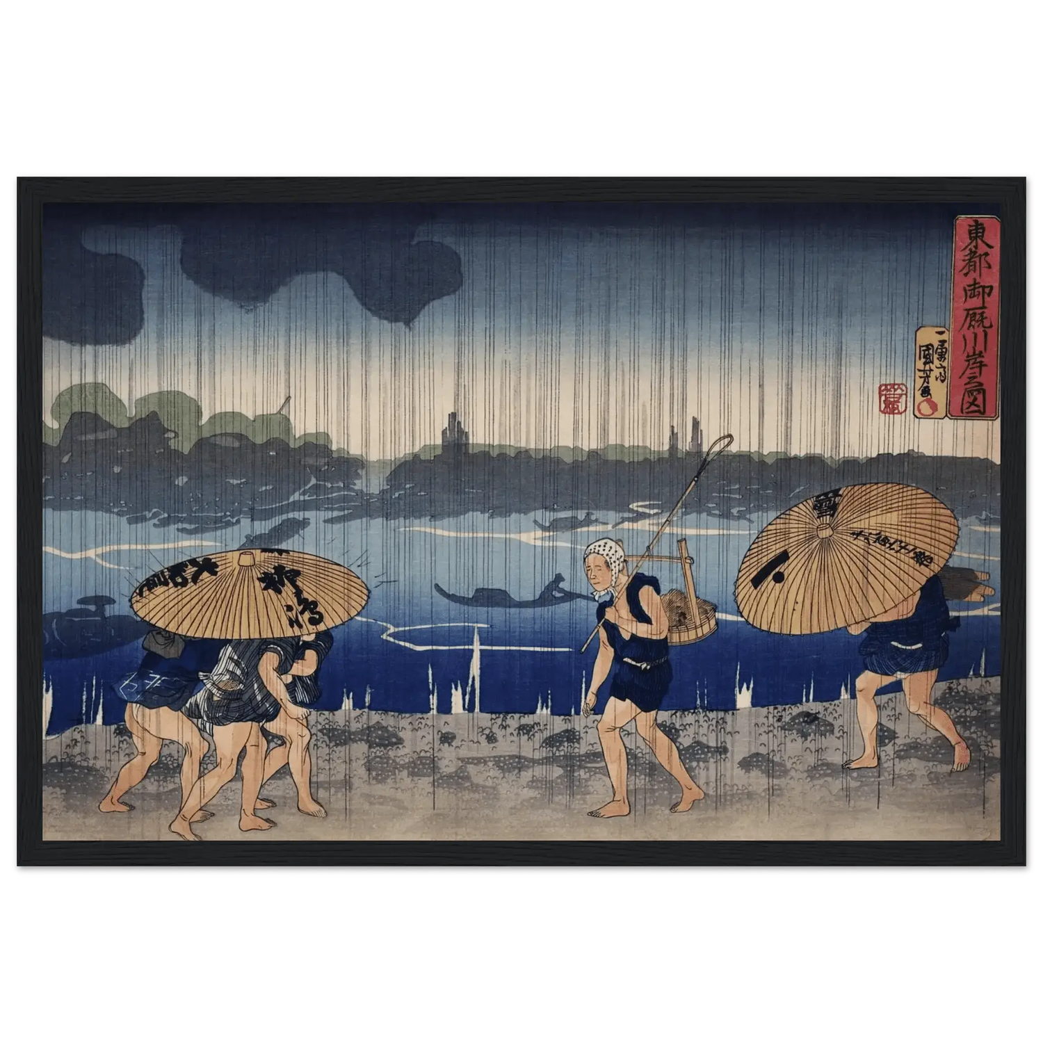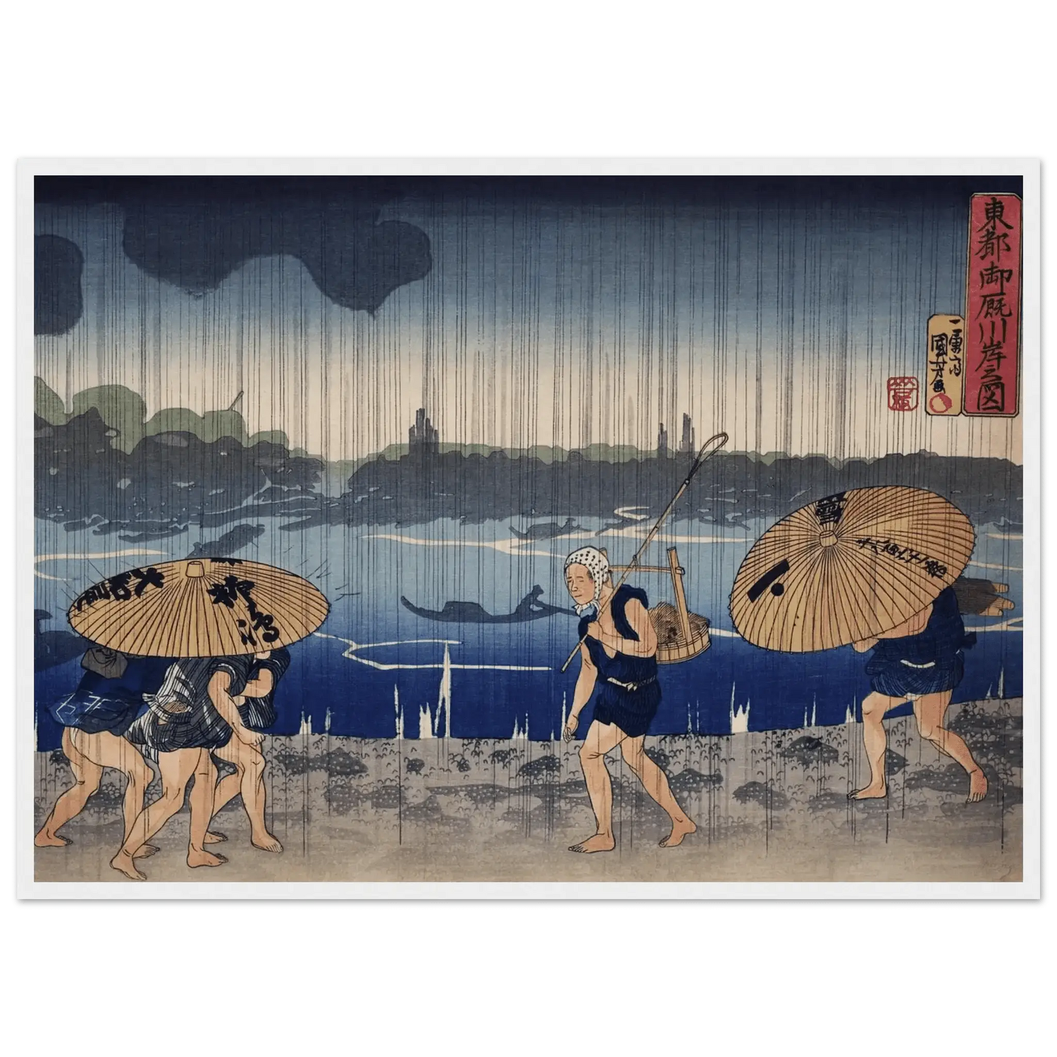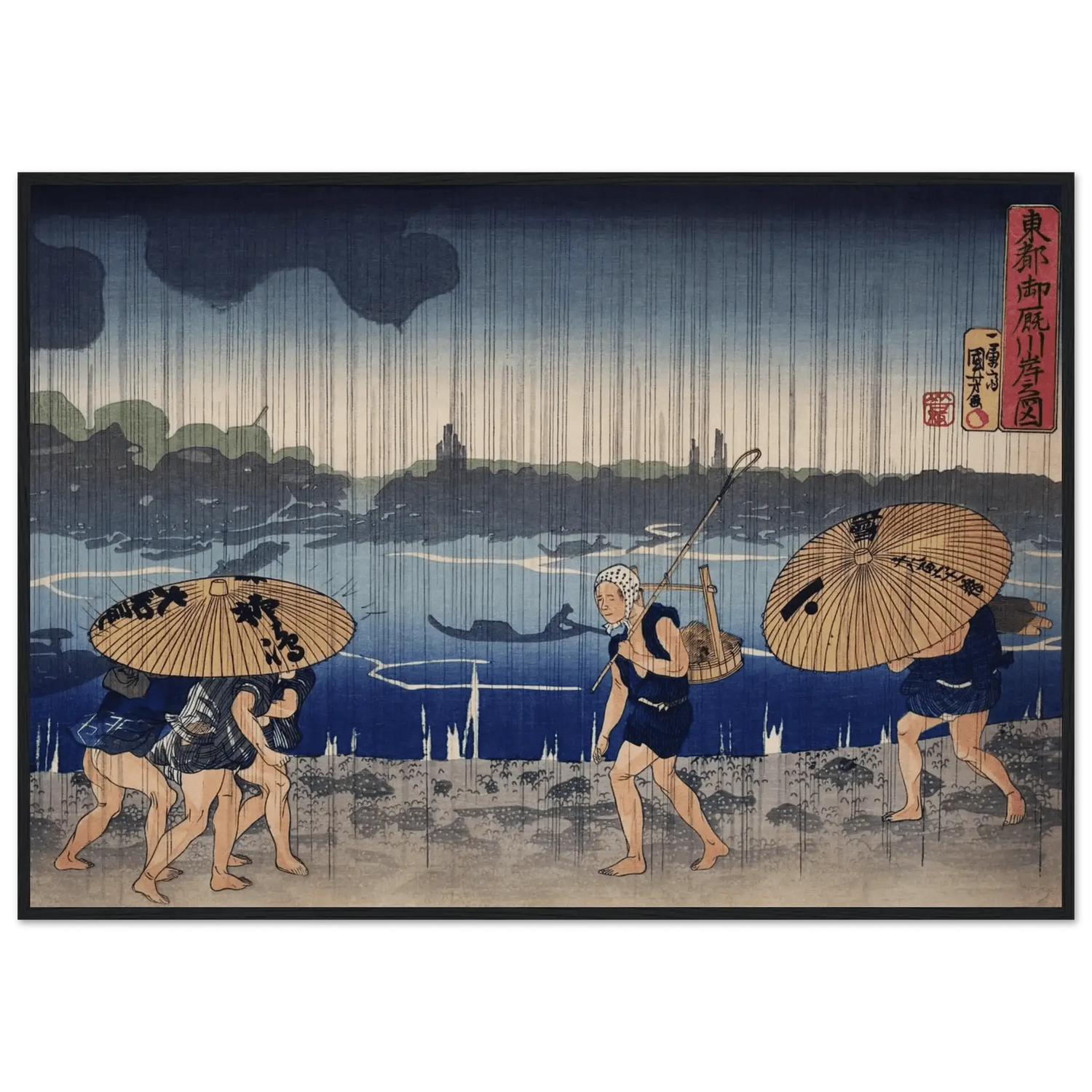 Regen am Sumida - Fluss - Gerahmte Eleganz - HINORI