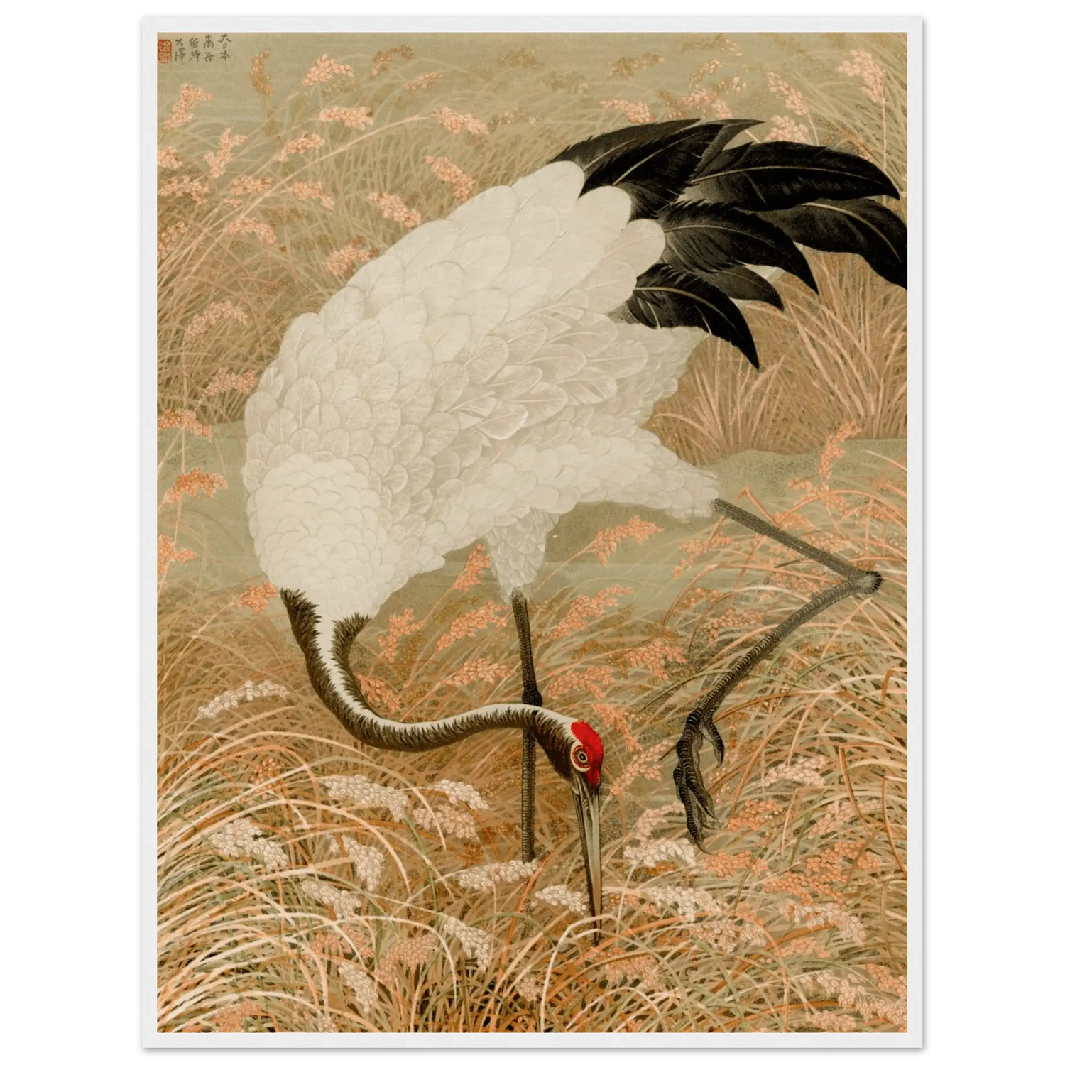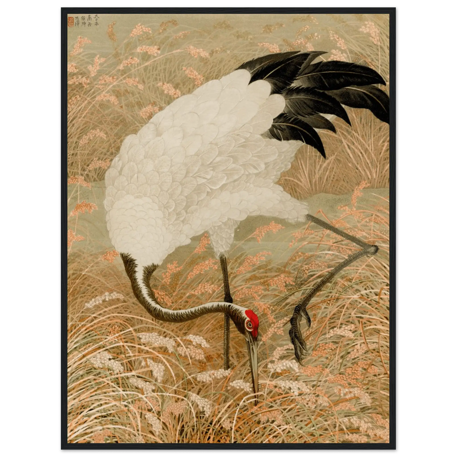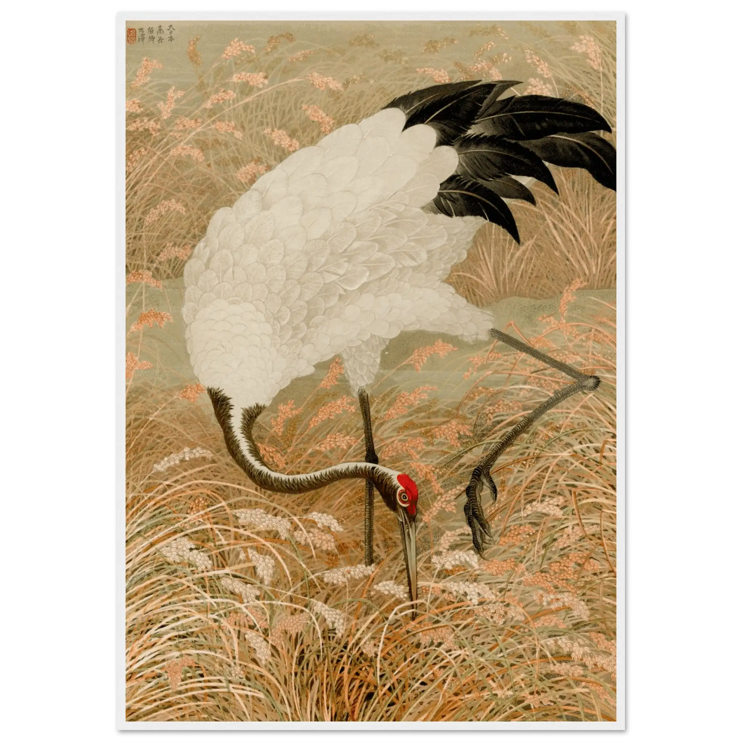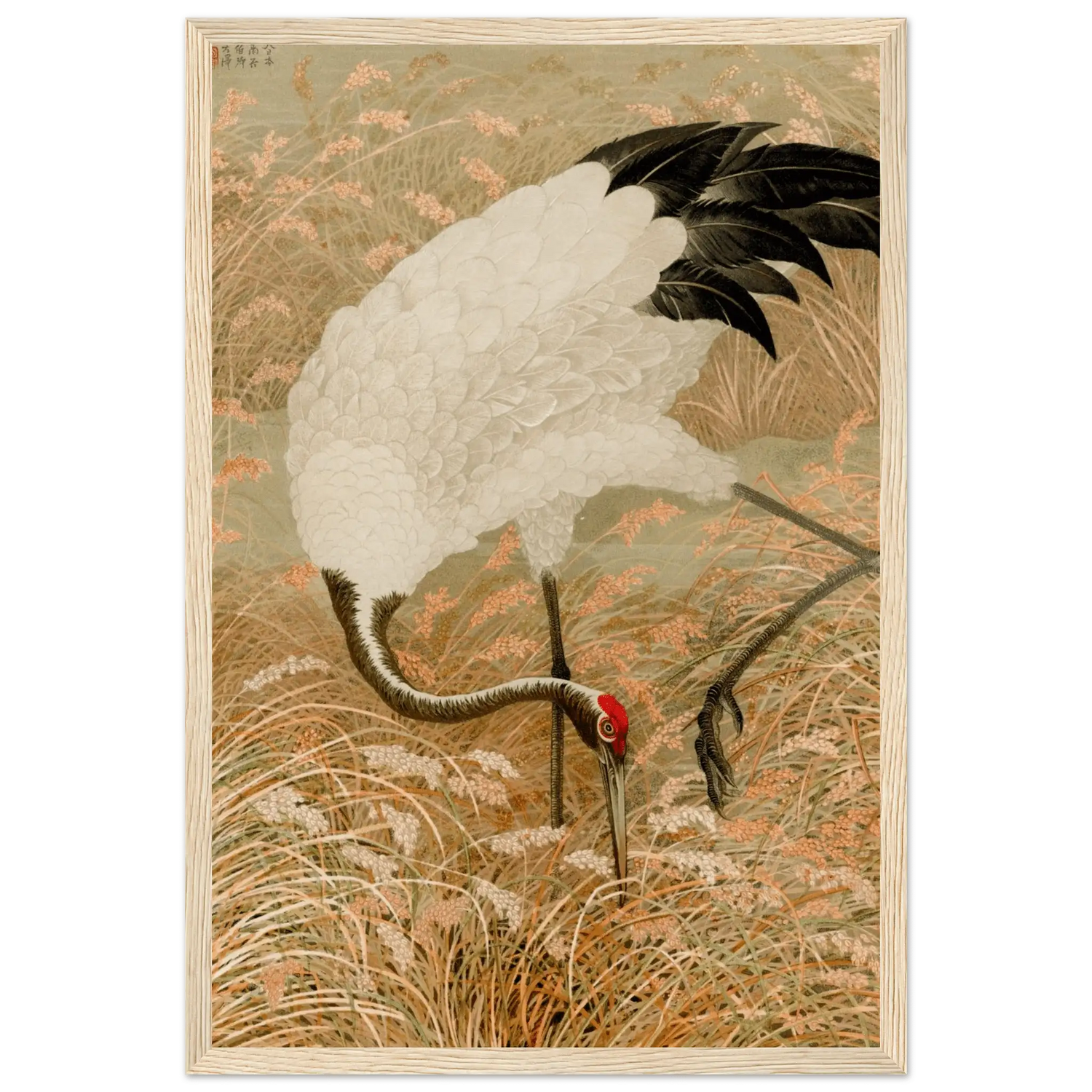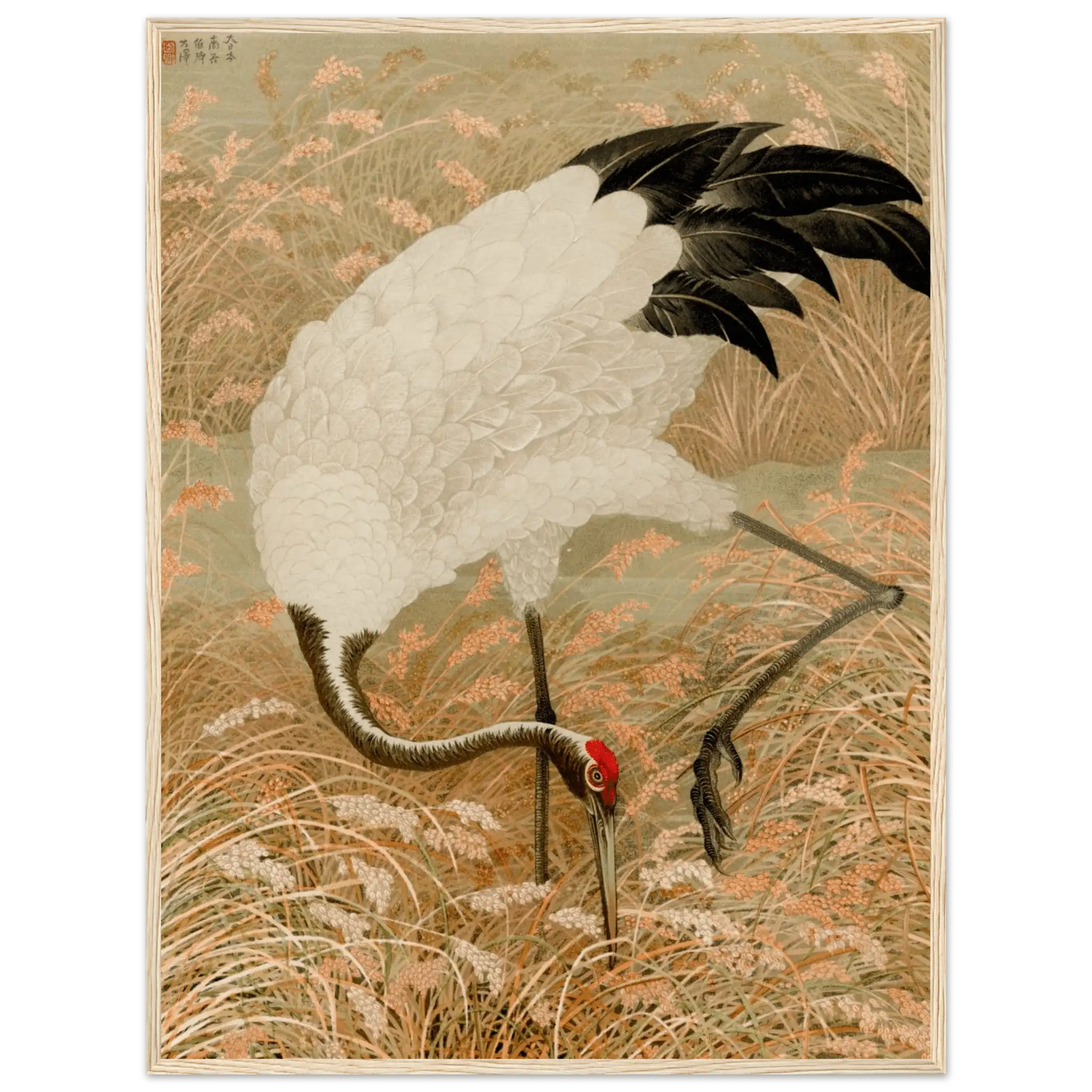 Kranich im Reisfeld - Gerahmte Eleganz - HINORI