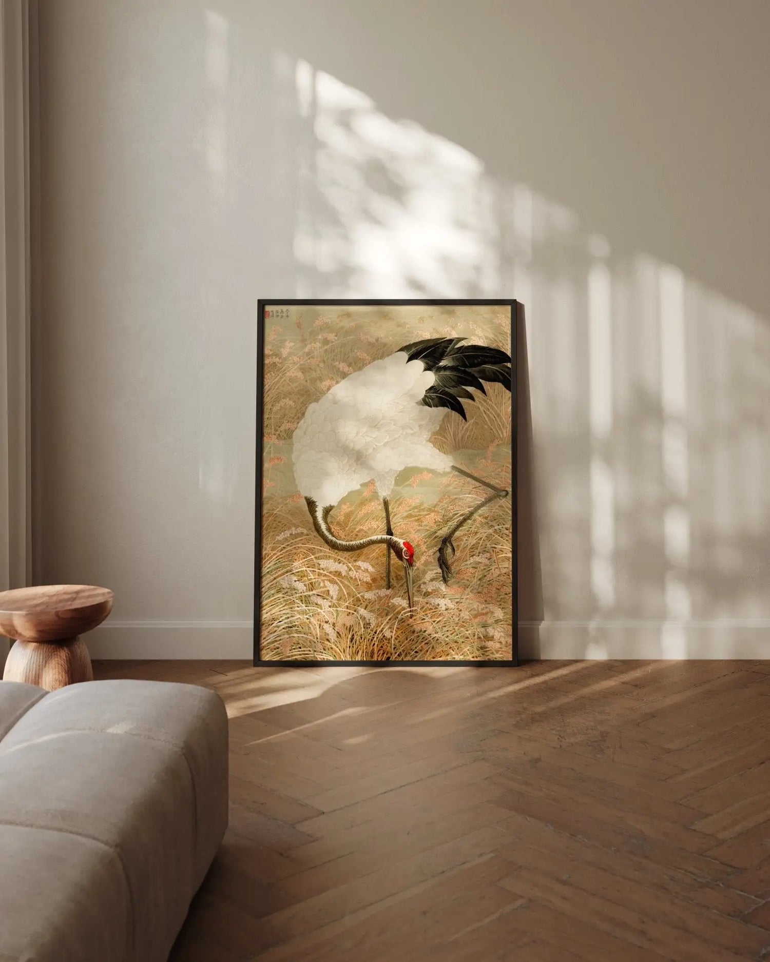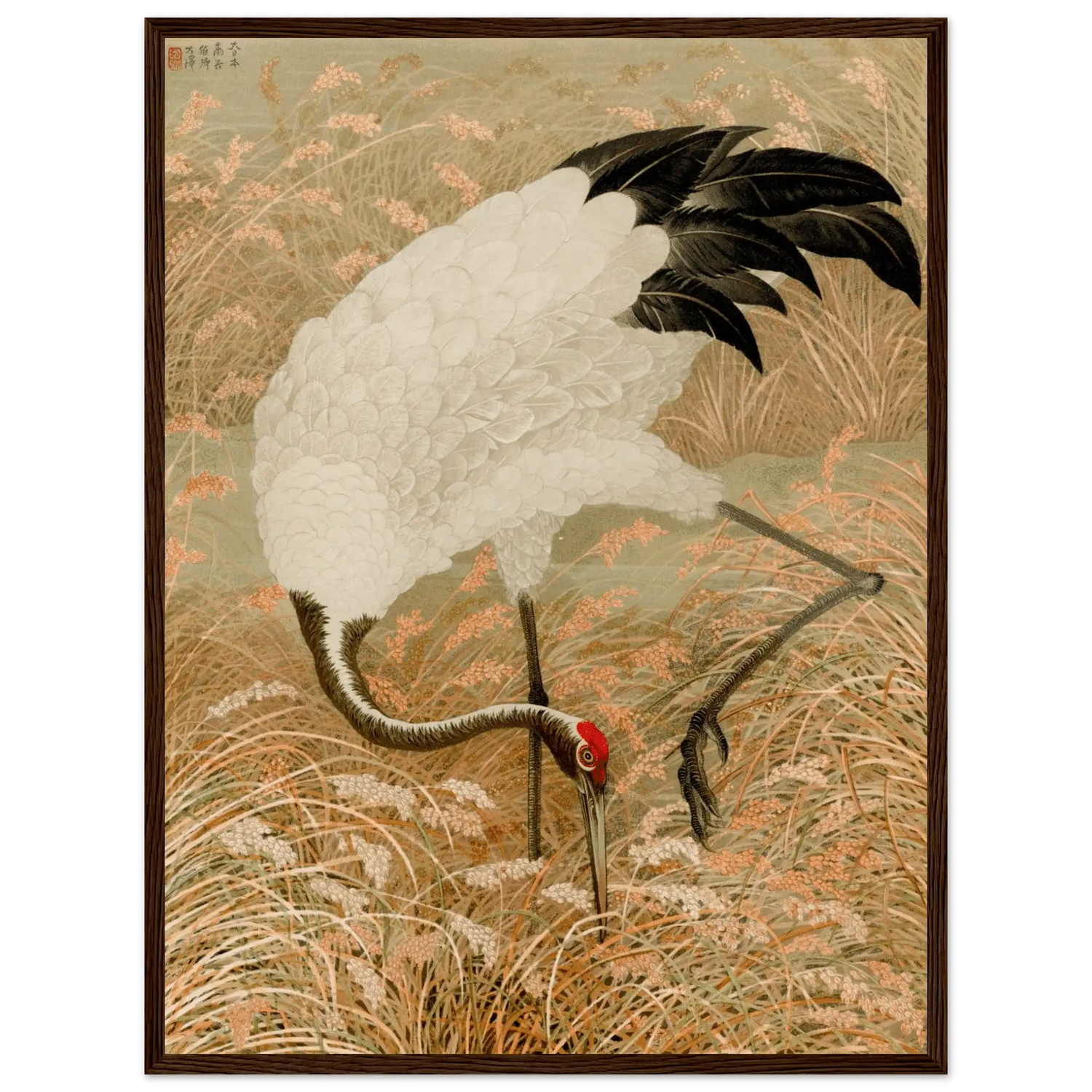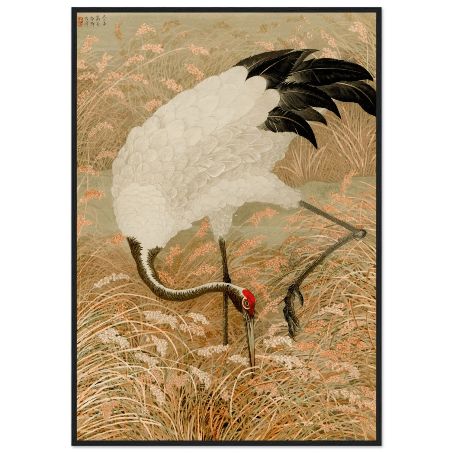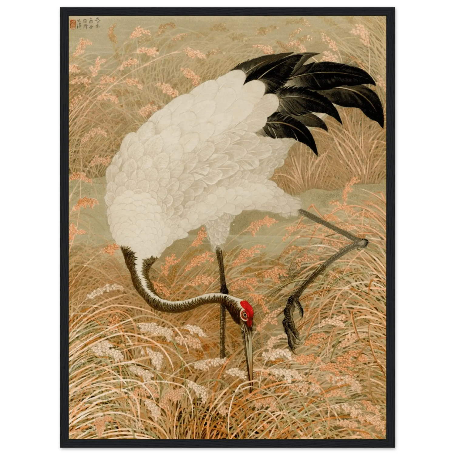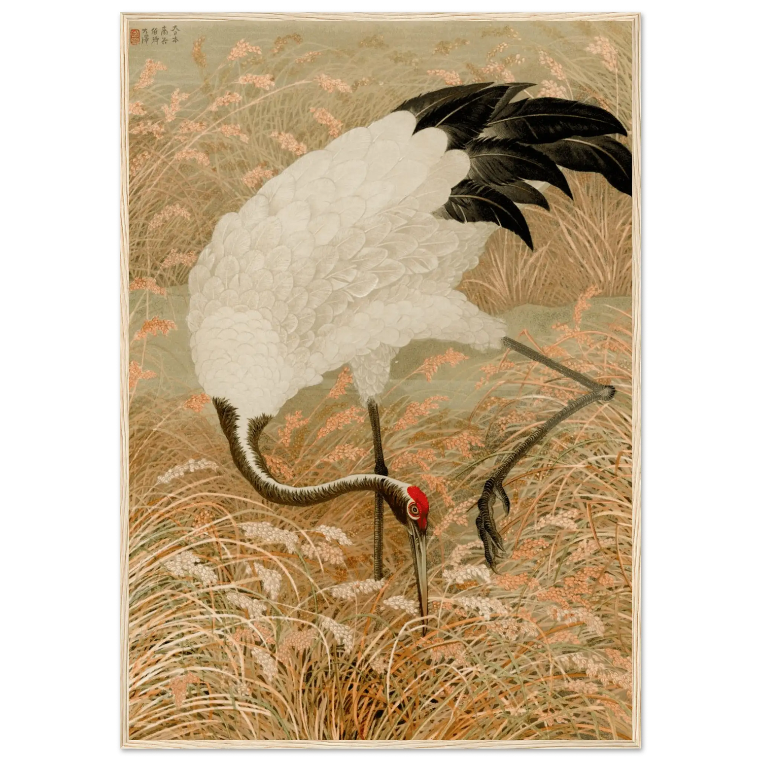 Kranich im Reisfeld - Gerahmte Eleganz - HINORI