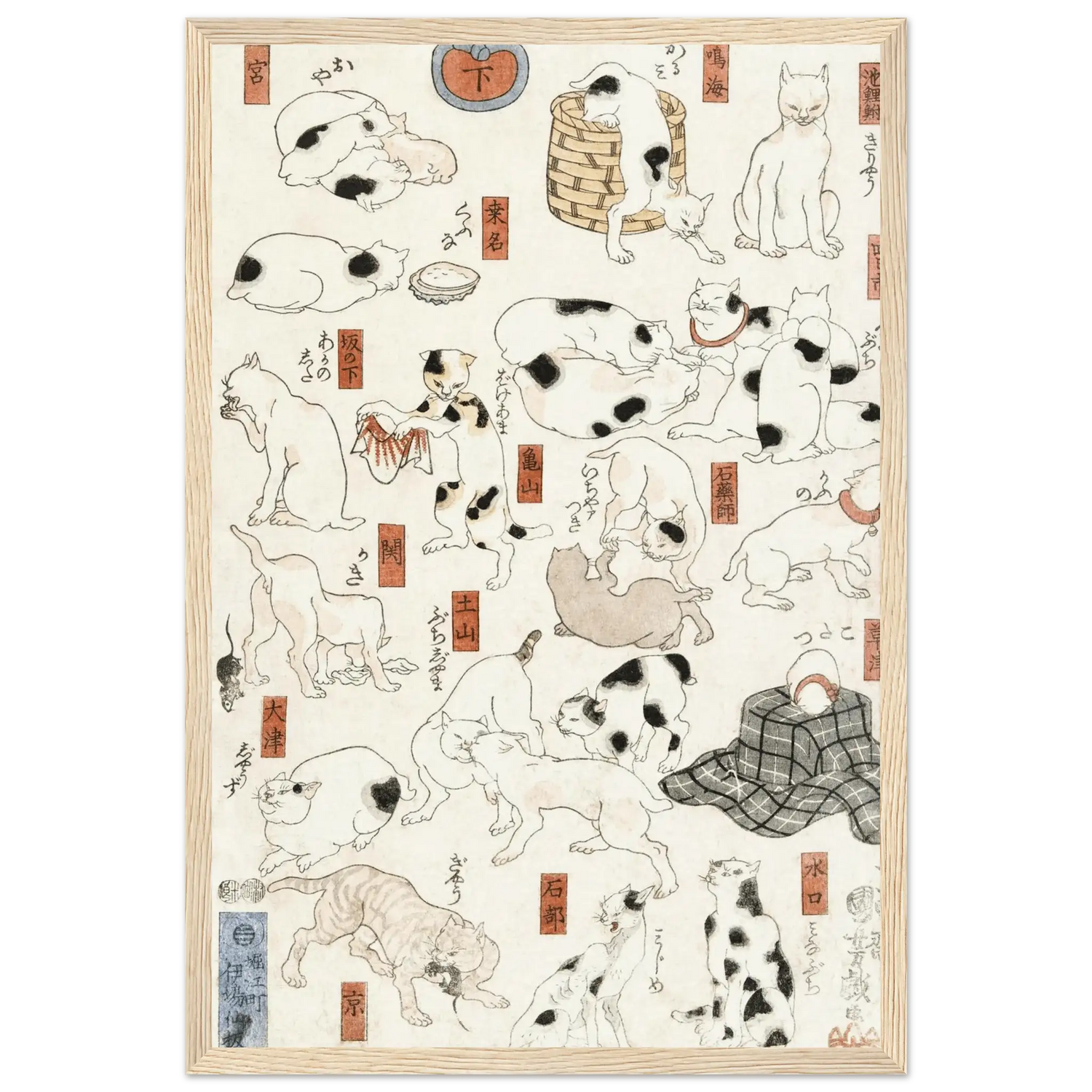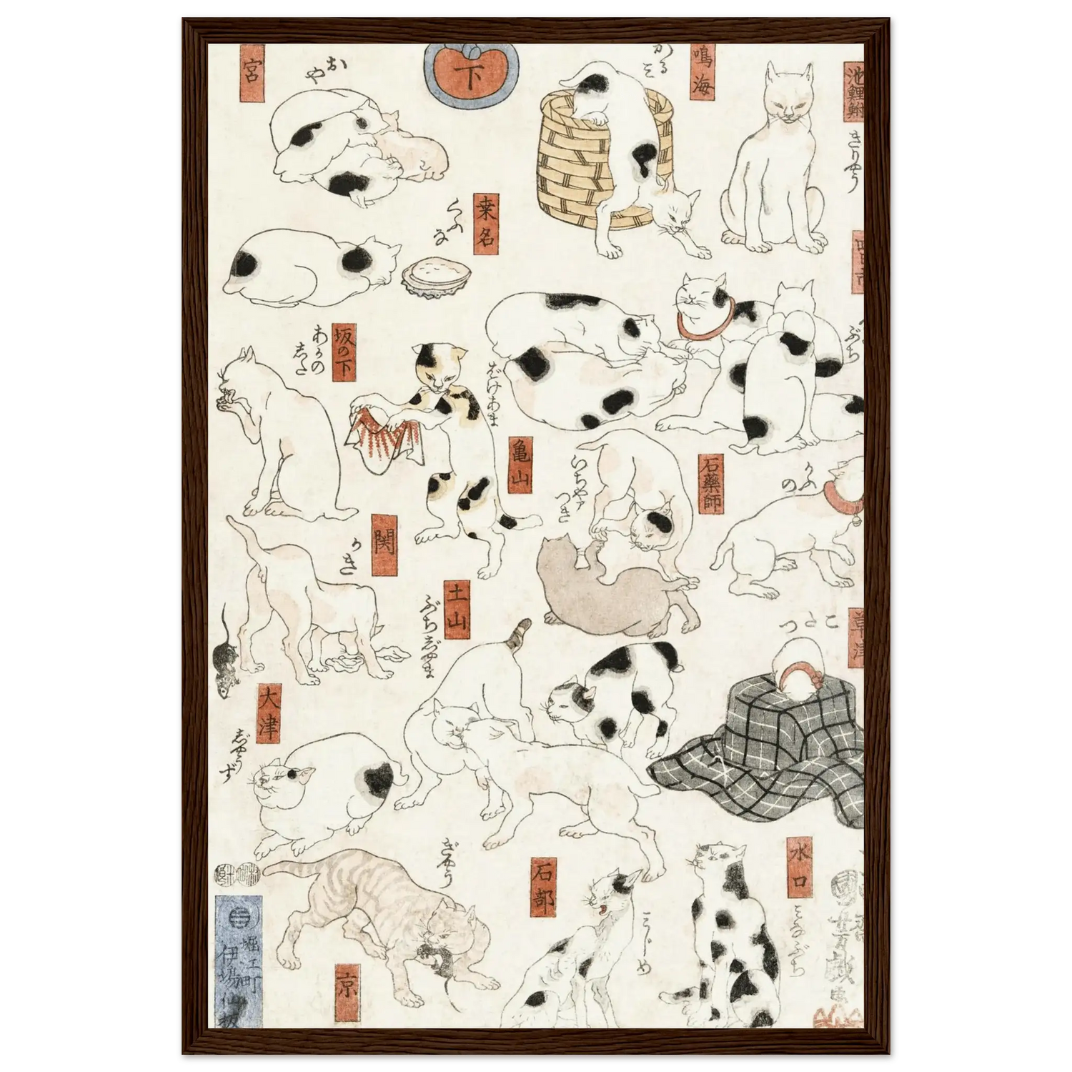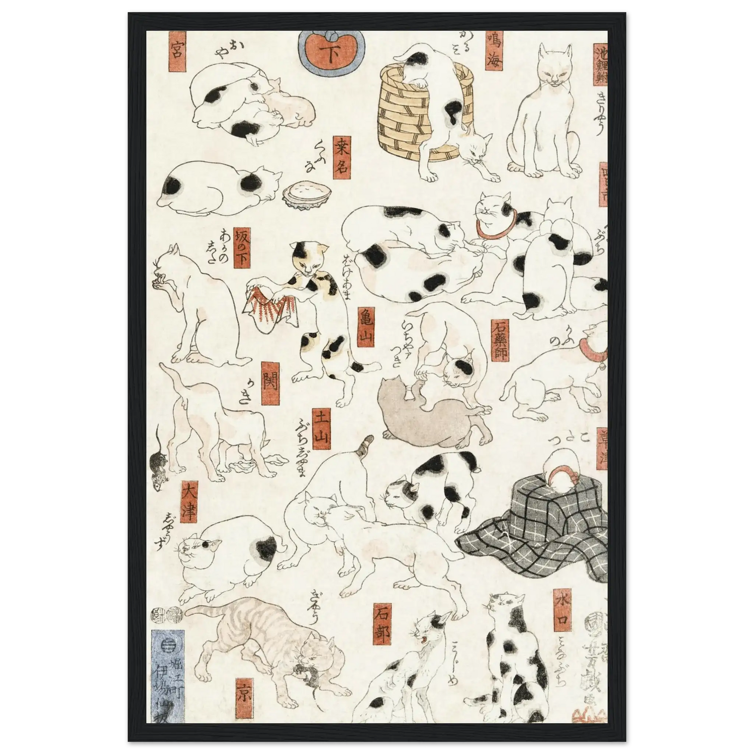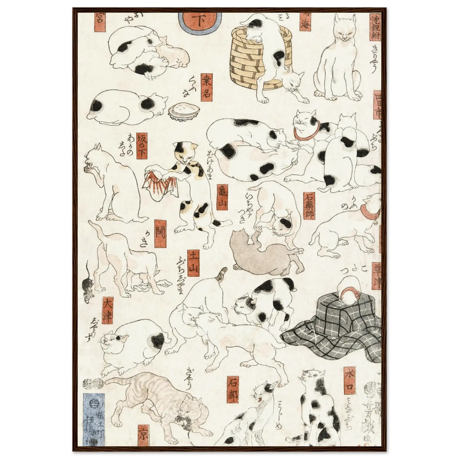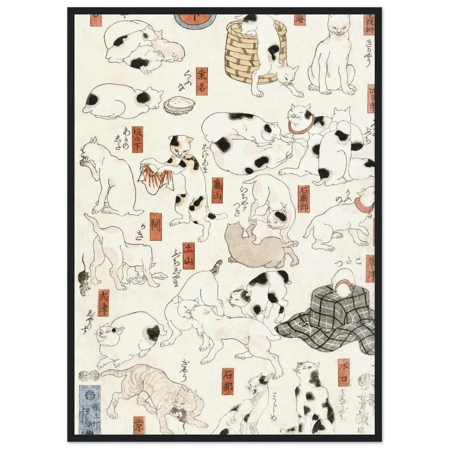 Katzen entlang der Tōkaidō - Straße - Gerahmte Eleganz - HINORI