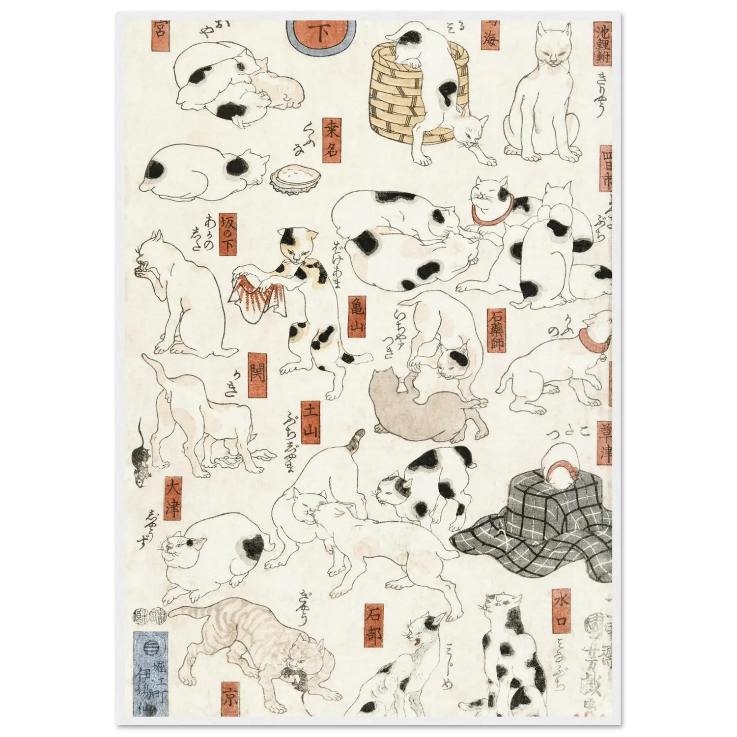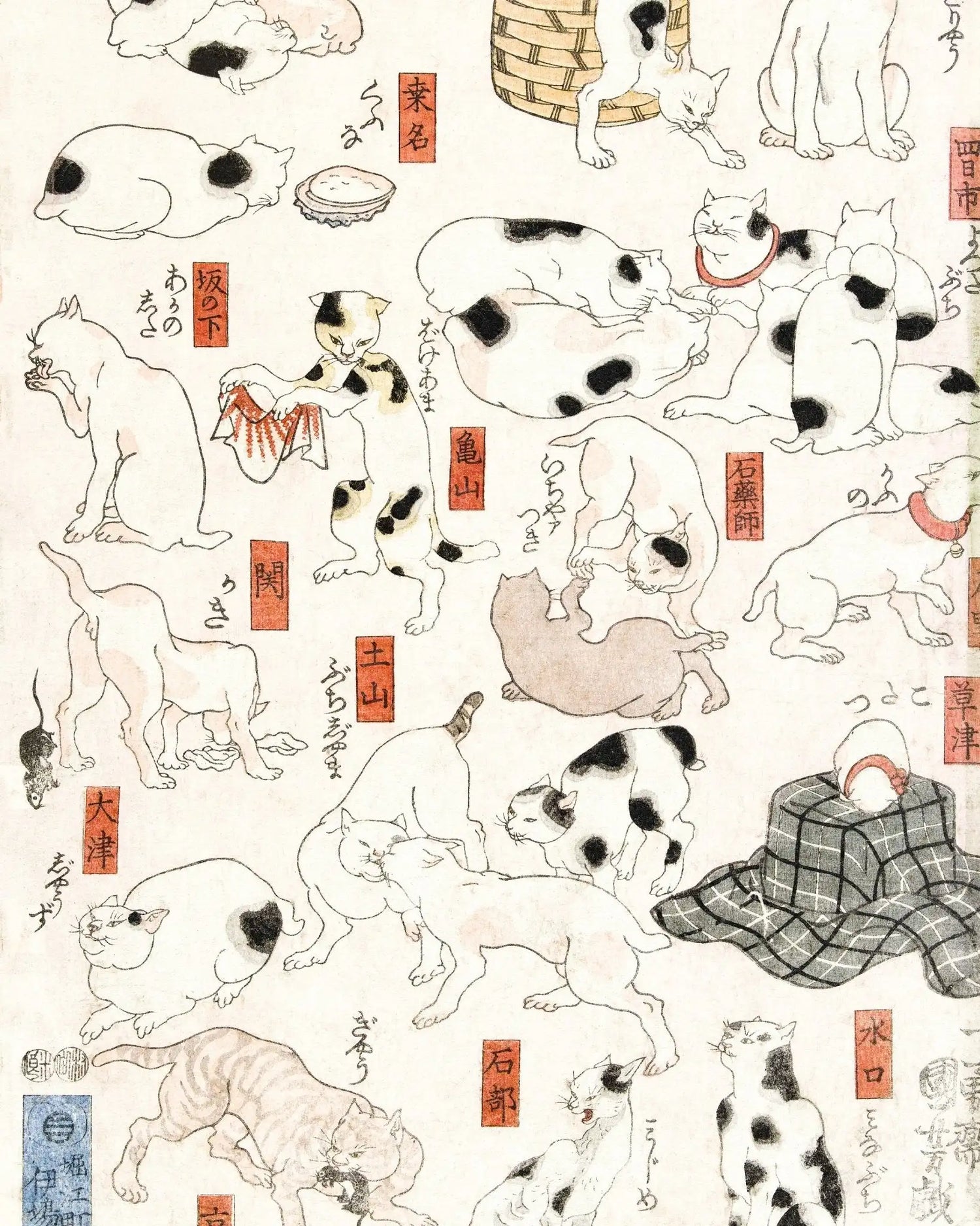 Titel: Katzen entlang der Tōkaidō-Straße (Cats Suggested as the Fifty-Three Stations of the Tōkaidō)