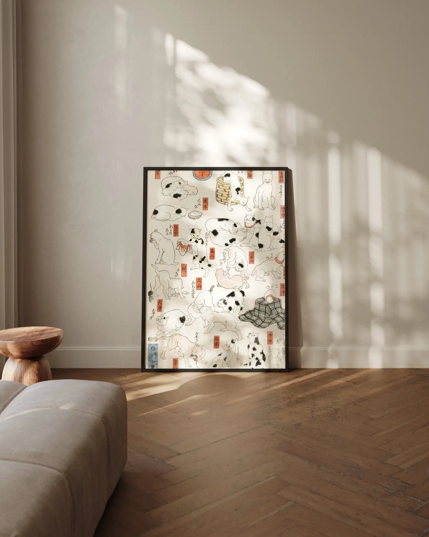 Kuniyoshi war nicht nur einer der kreativsten Meister der späten Edo-Zeit, sondern auch ein leidenschaftlicher Katzenliebhaber – seine Hauskatzen inspirierten ihn regelmäßig zu solchen spielerischen Parodien.